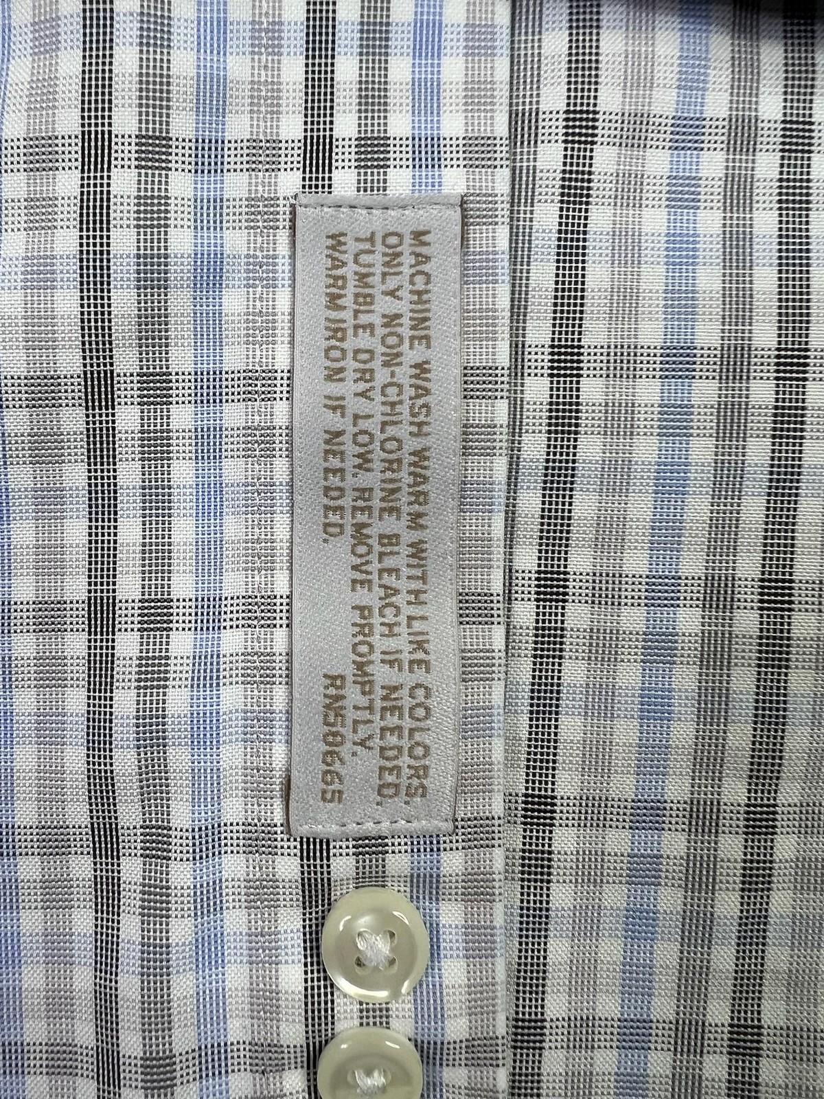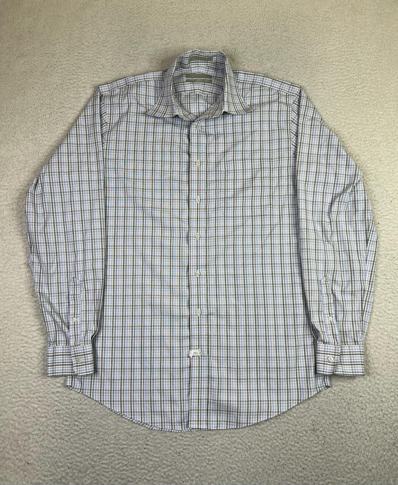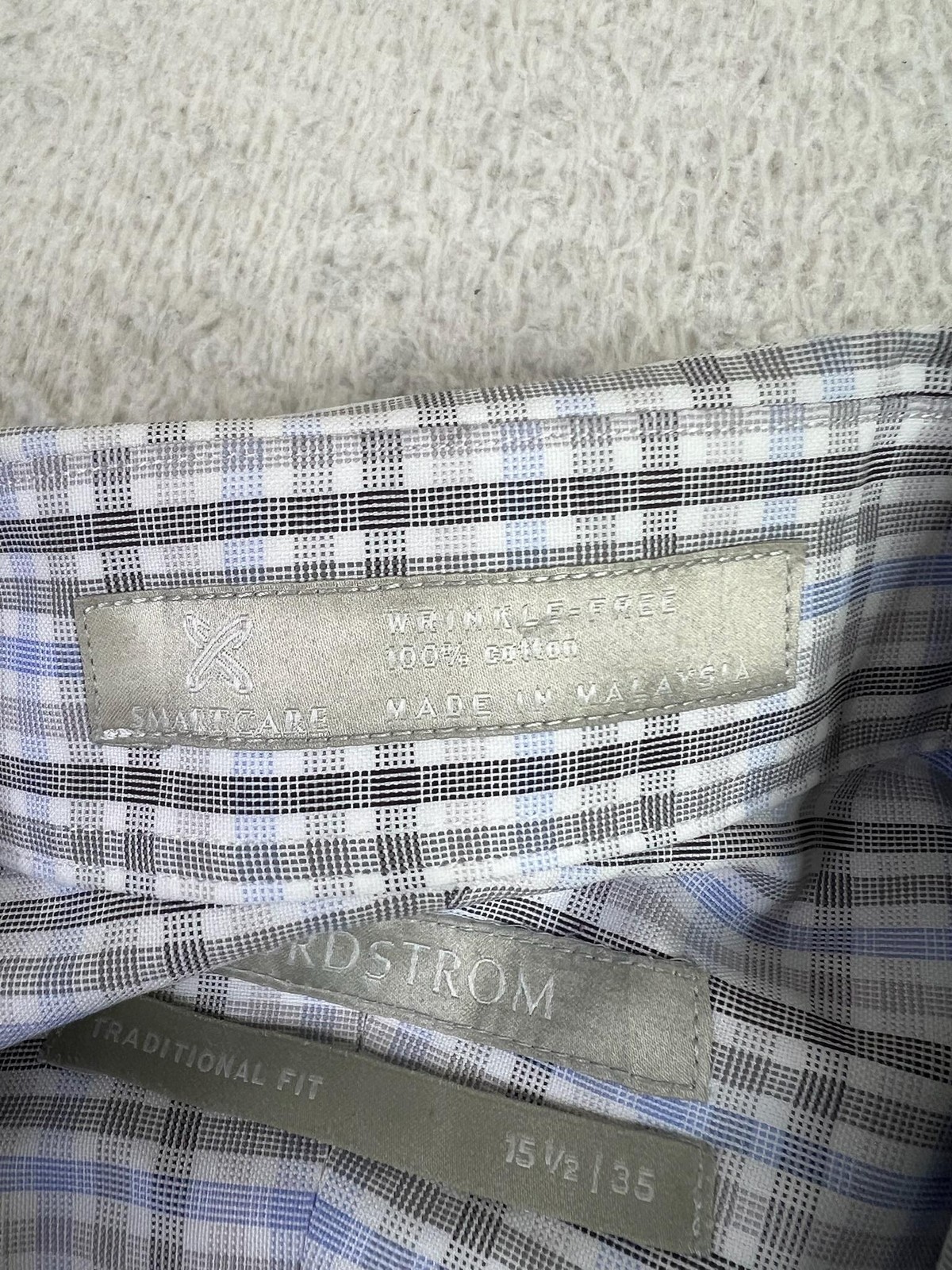 Nordstrom Shirt Mens 15.5 35 Blue Gray Plaid Traditional Fit Wrinkle Free