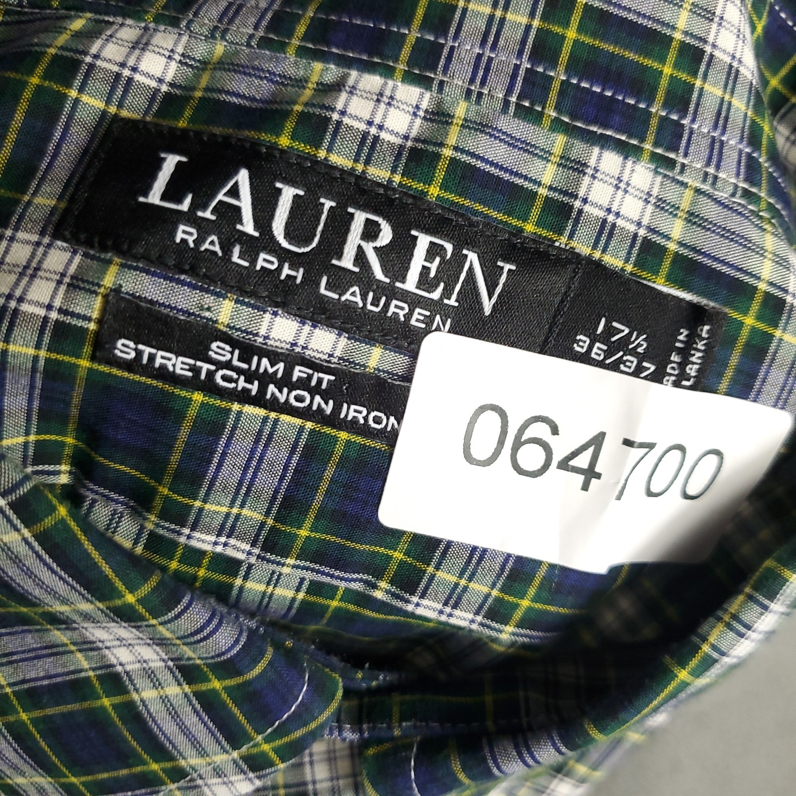 Ralph Lauren Shirt Mens Size 17.5 Blue Plaid Dress Button Up Long Sleeve