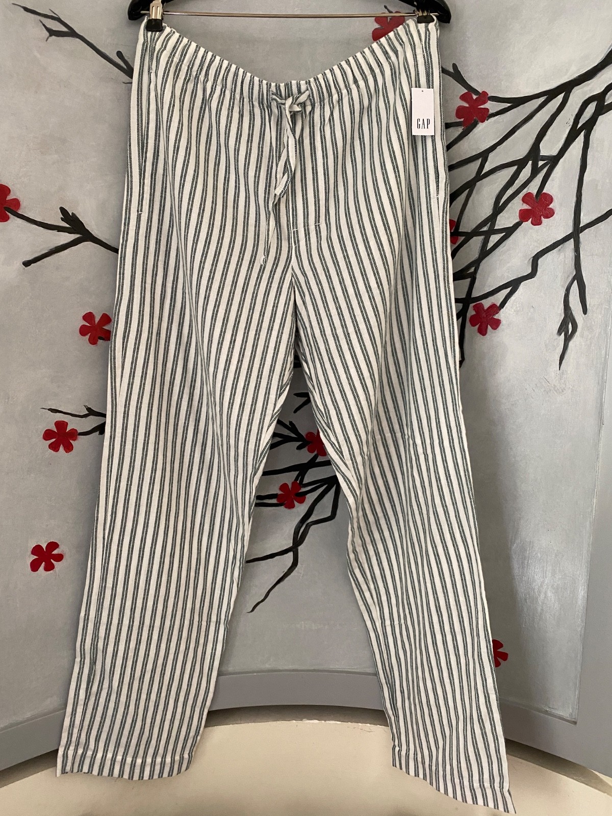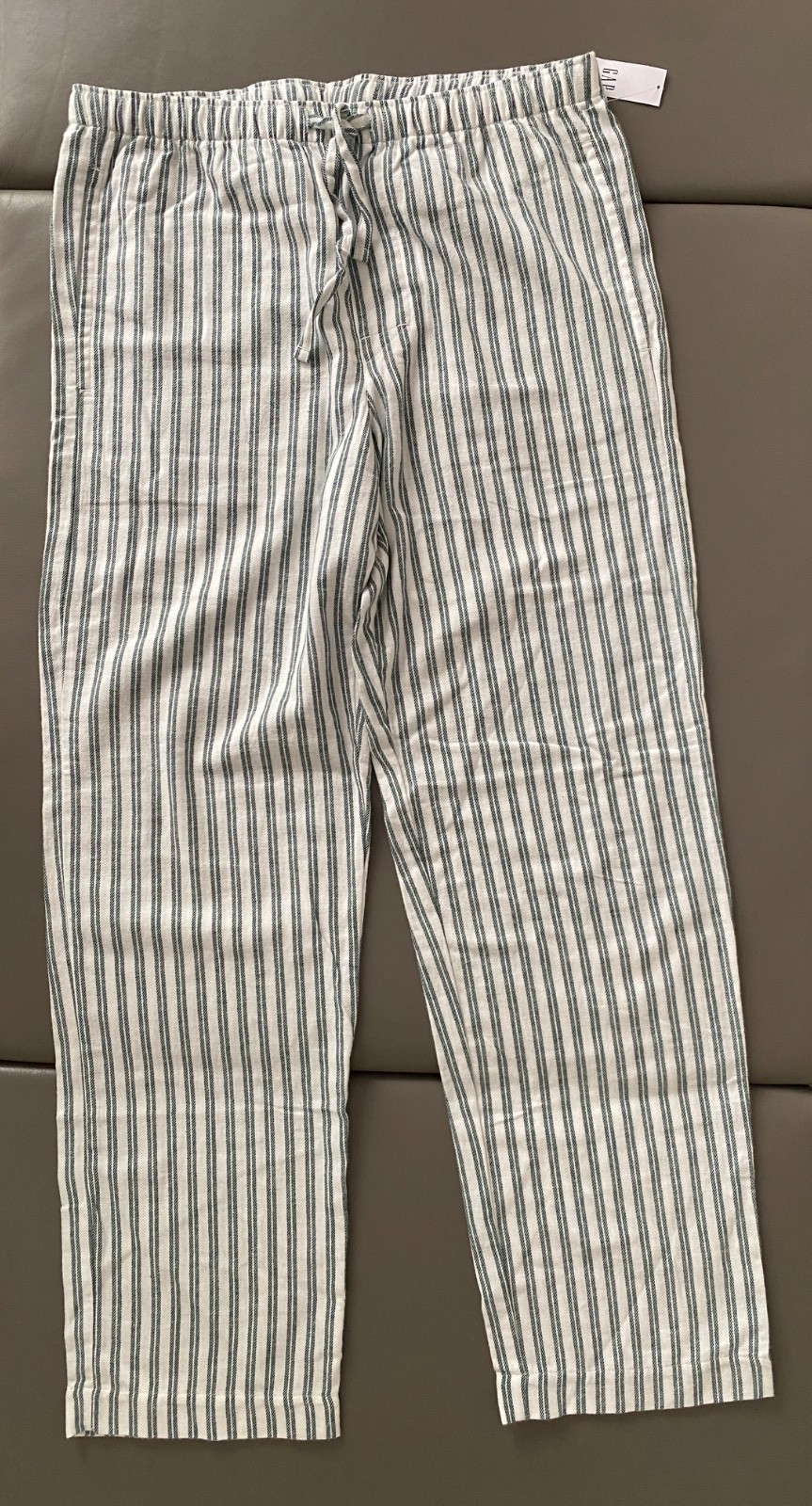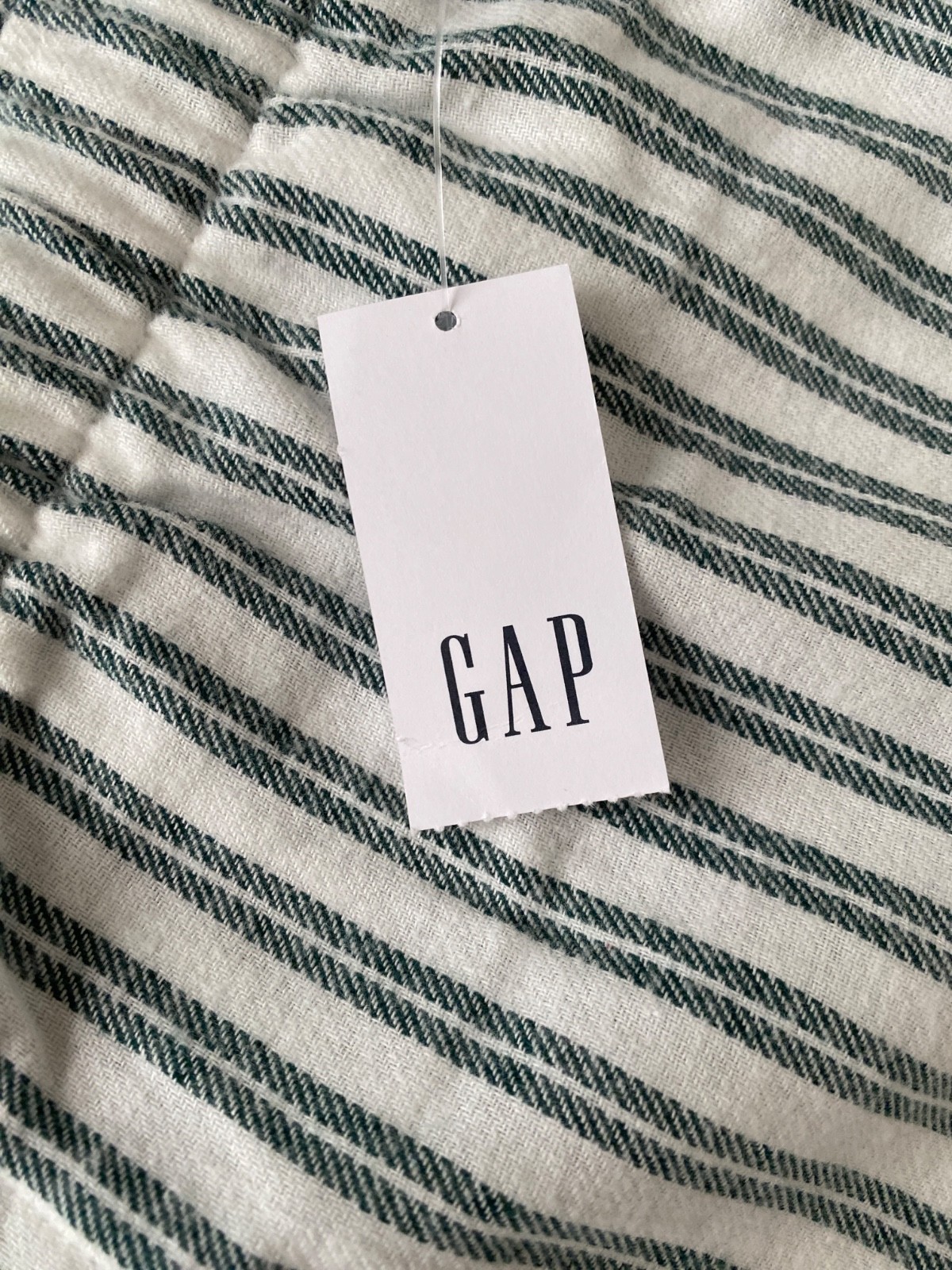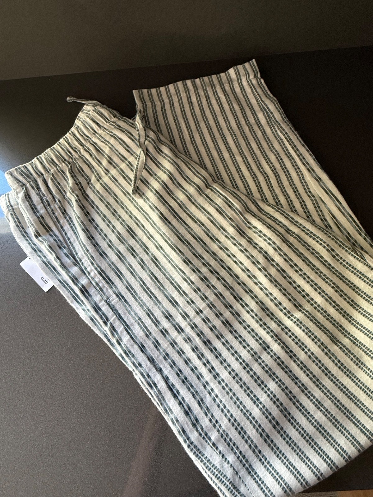 как выглядит GAP Flannel PJ Pant June Bug Gray White Striped Size Medium Drawstring NWT фото