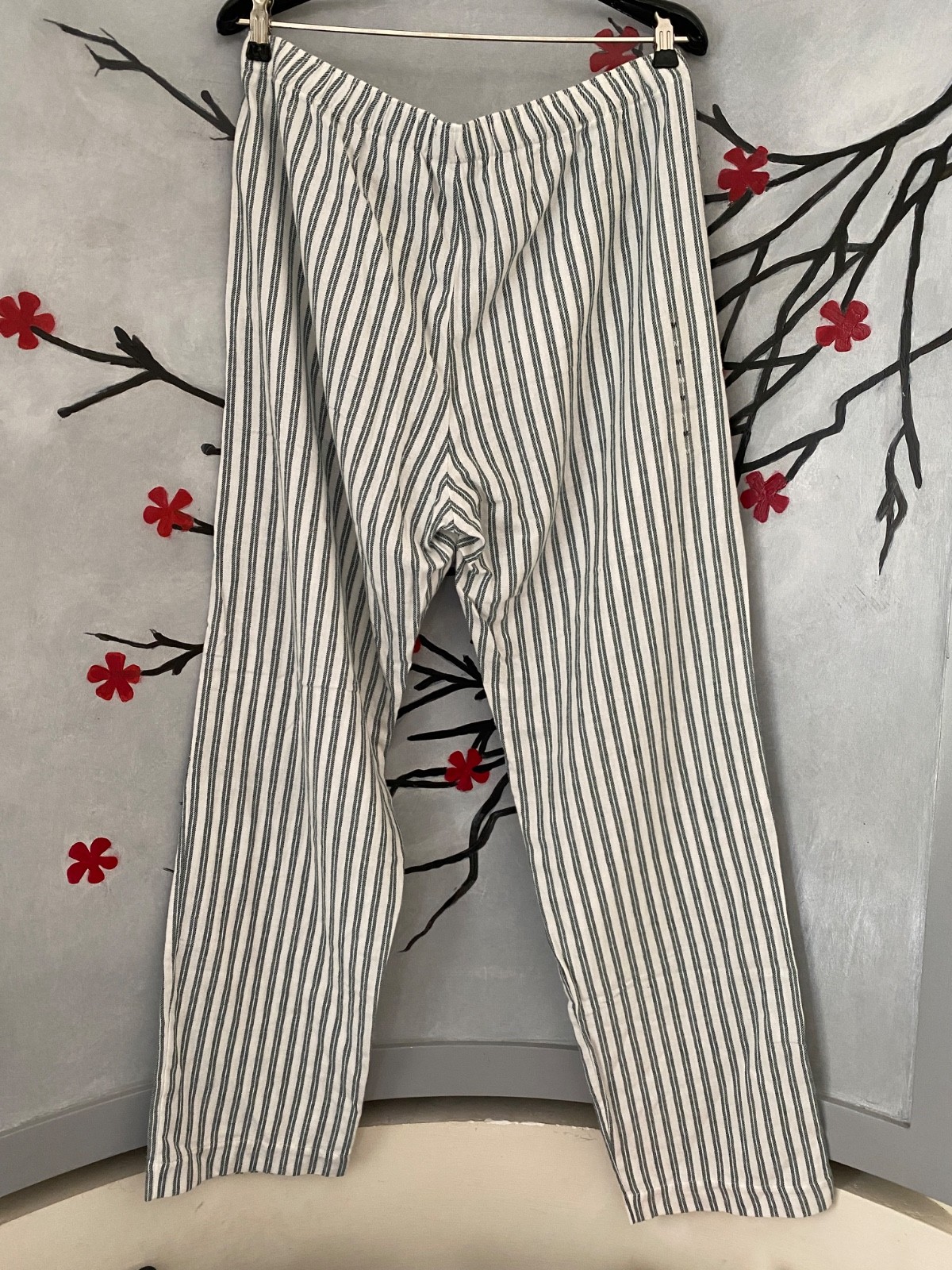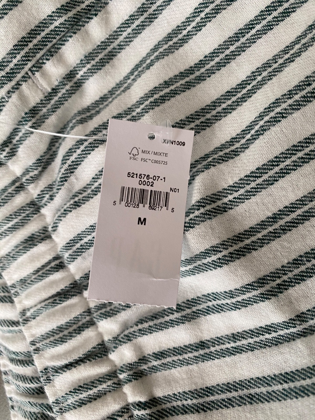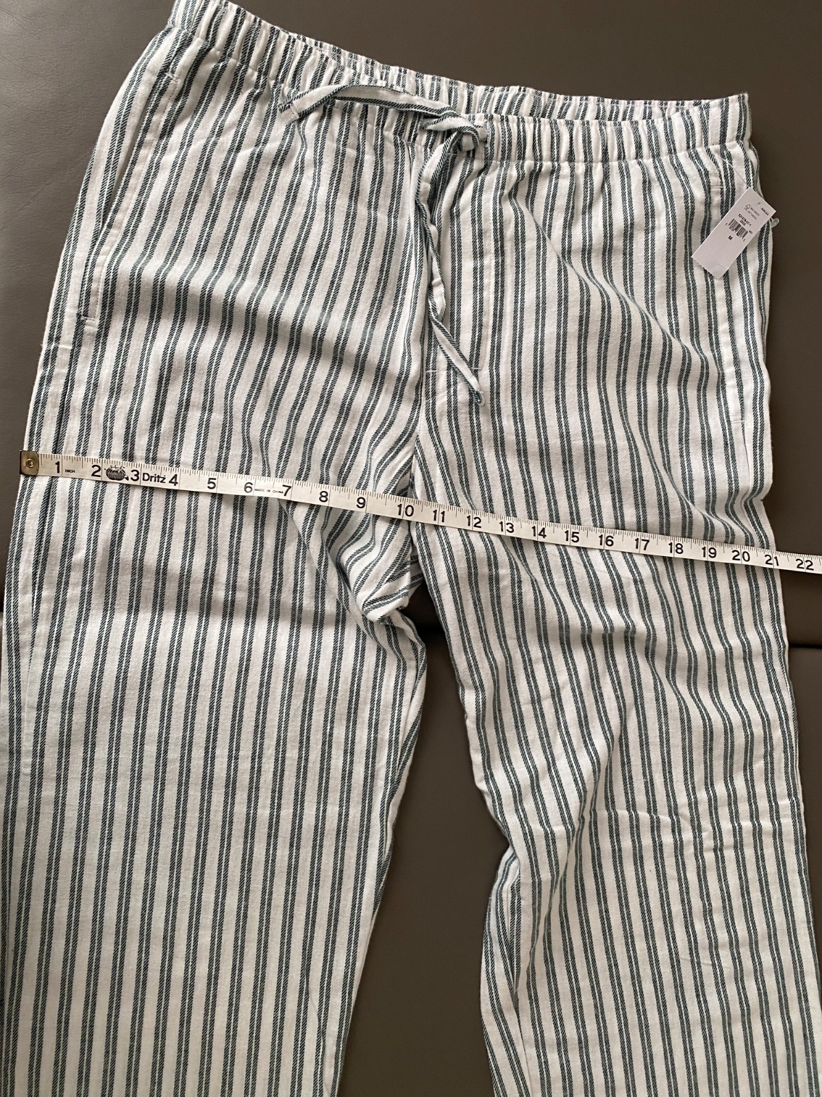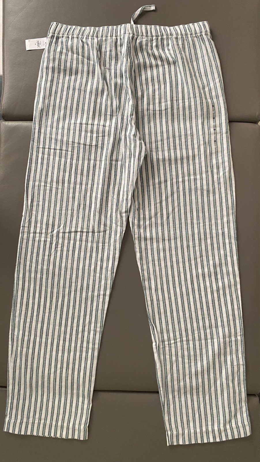 как выглядит GAP Flannel PJ Pant June Bug Gray White Striped Size Medium Drawstring NWT фото