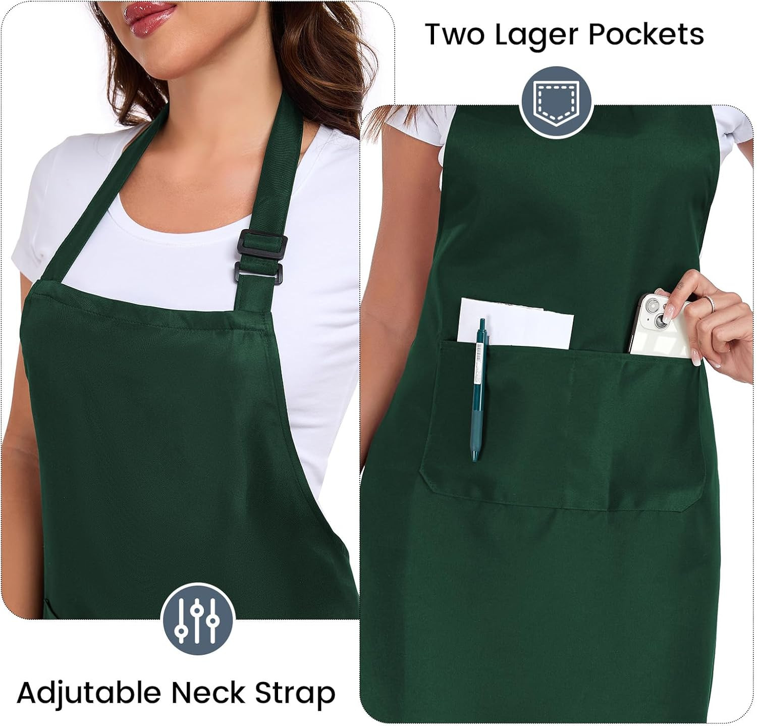 2 Pack adjustable apron with 2 pockets for men and women, waterproof and oil Res