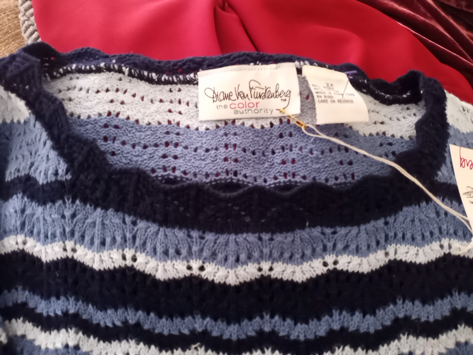Diane Von Furstenberg Vtg Chunky Long Knit Scallop Neck Sweater Women's Size 2X