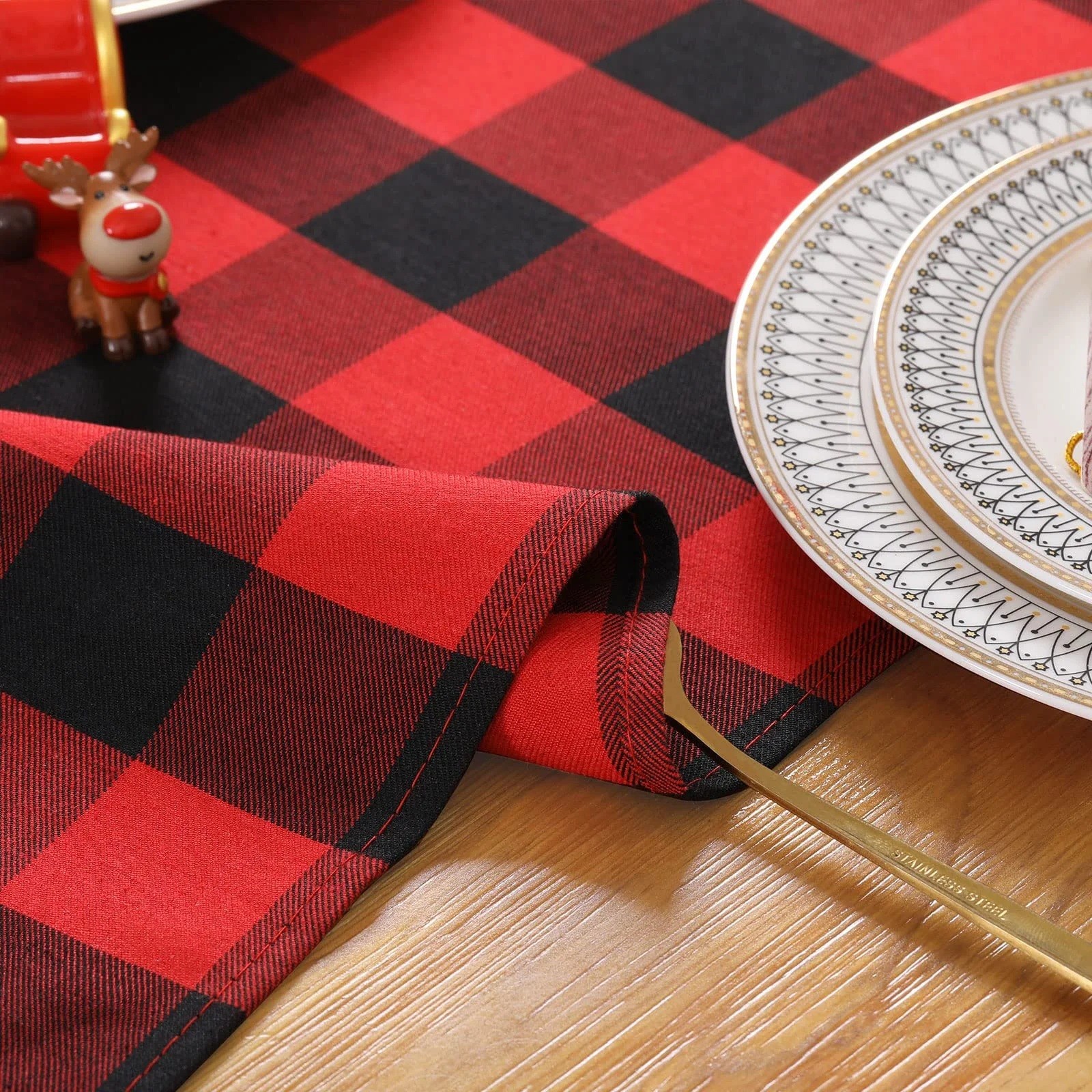 как выглядит 2Pcs Black Red Buffalo Plaid Table Runner 13x84 Inch Christmas Holiday Decor фото