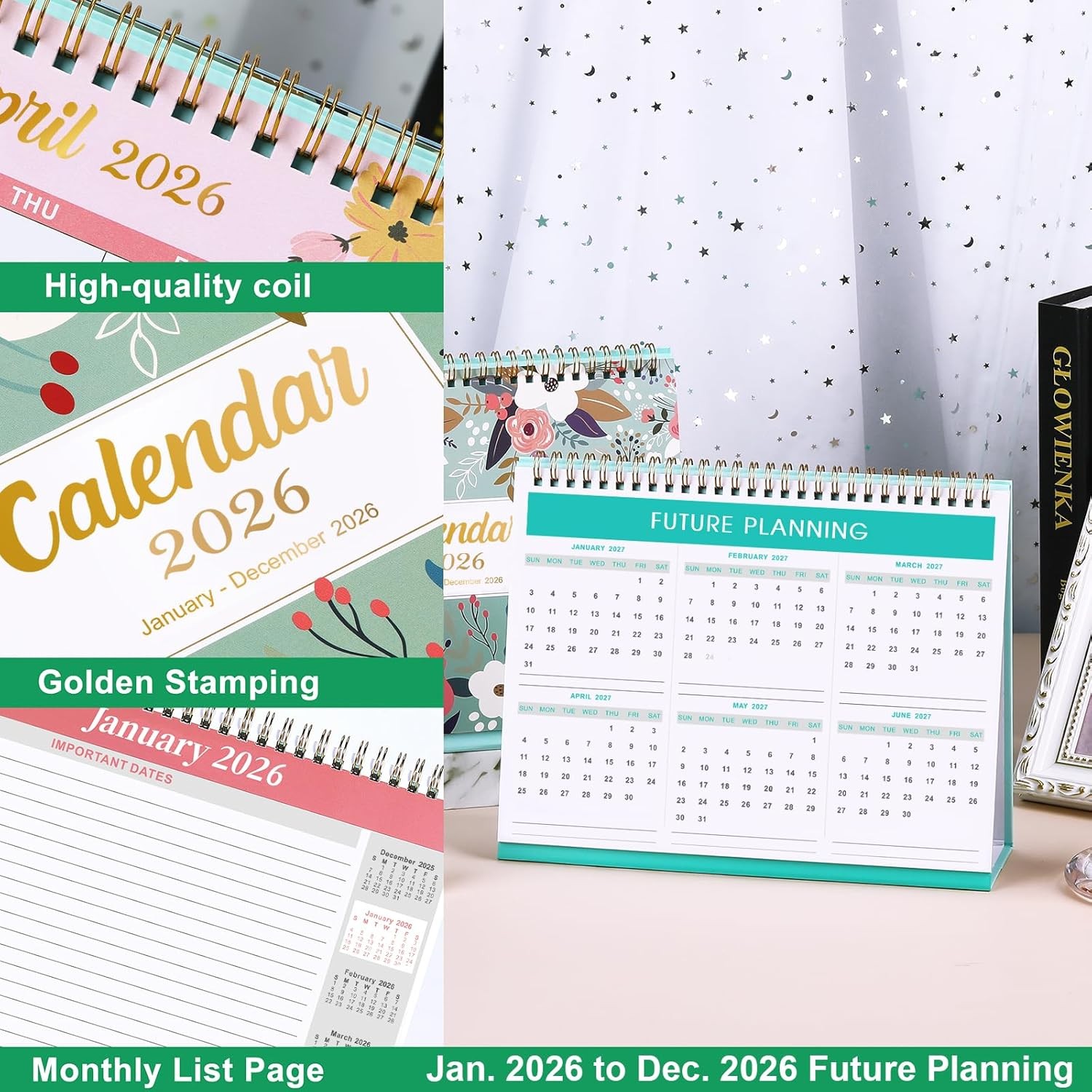 • 2026 Desk Calendar - Standing Flip 2026 Desktop Calendar with Thick Paper, 9.8"