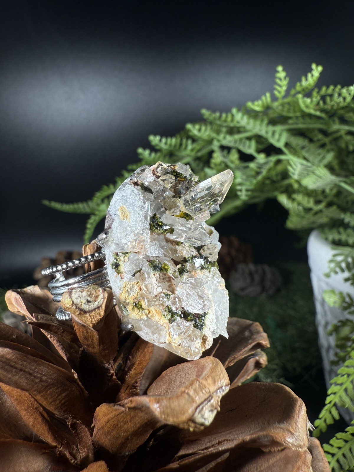 garden quartz epidote Ring Jewelry, Unique handmade crystal ring Adjustable Ring