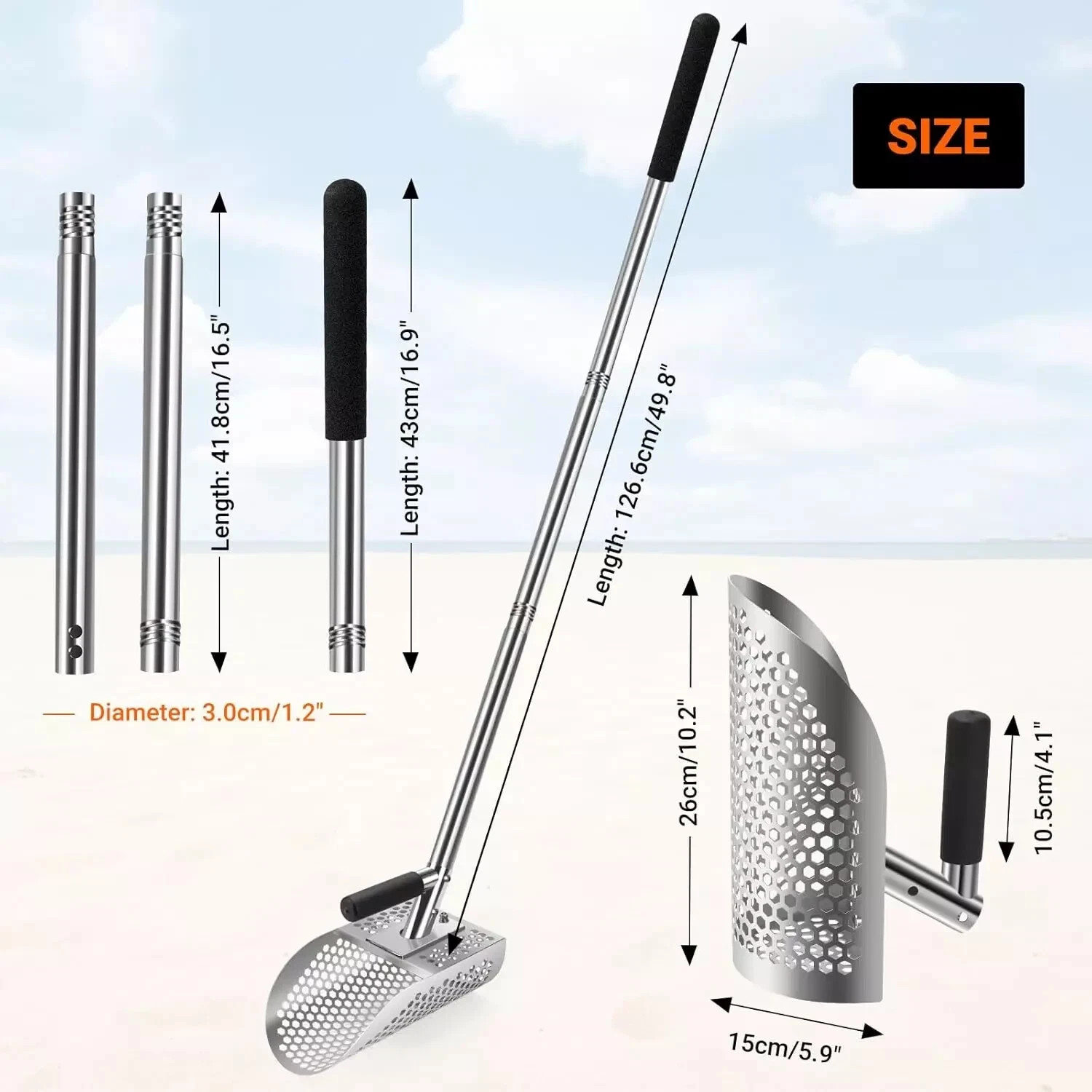 Long Handle Sand Scoop with Shovel for Metal Detecting, Metal Detector at Beach,