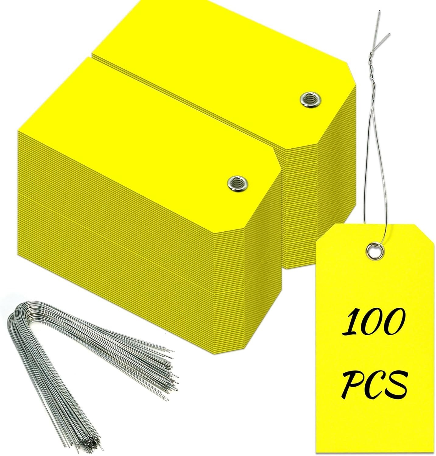 100Pcs Yellow Plastic Shipping Tags with Wire Waterproof ID Inventory Labels