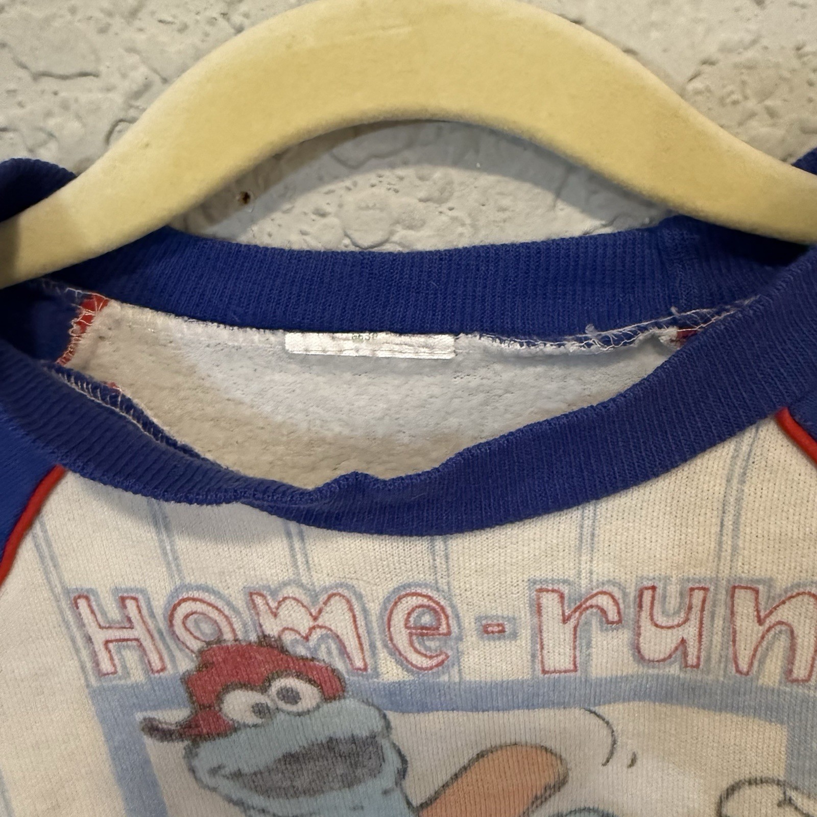 Vintage 90s RARE Sesame Street Cookie Monster Home Run Baseball3T Sweatshirt