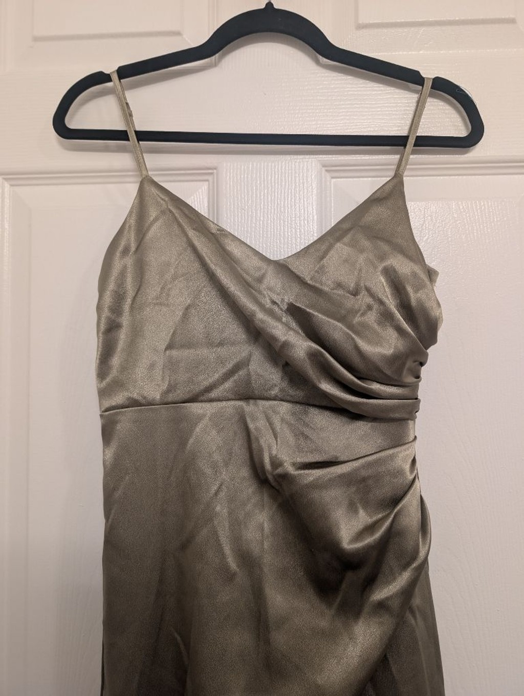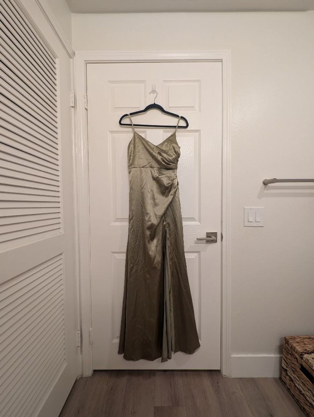 как выглядит Womens Birdy Grey Sage Green Satin Maxi Dress S formal long gown bridesmaid фото