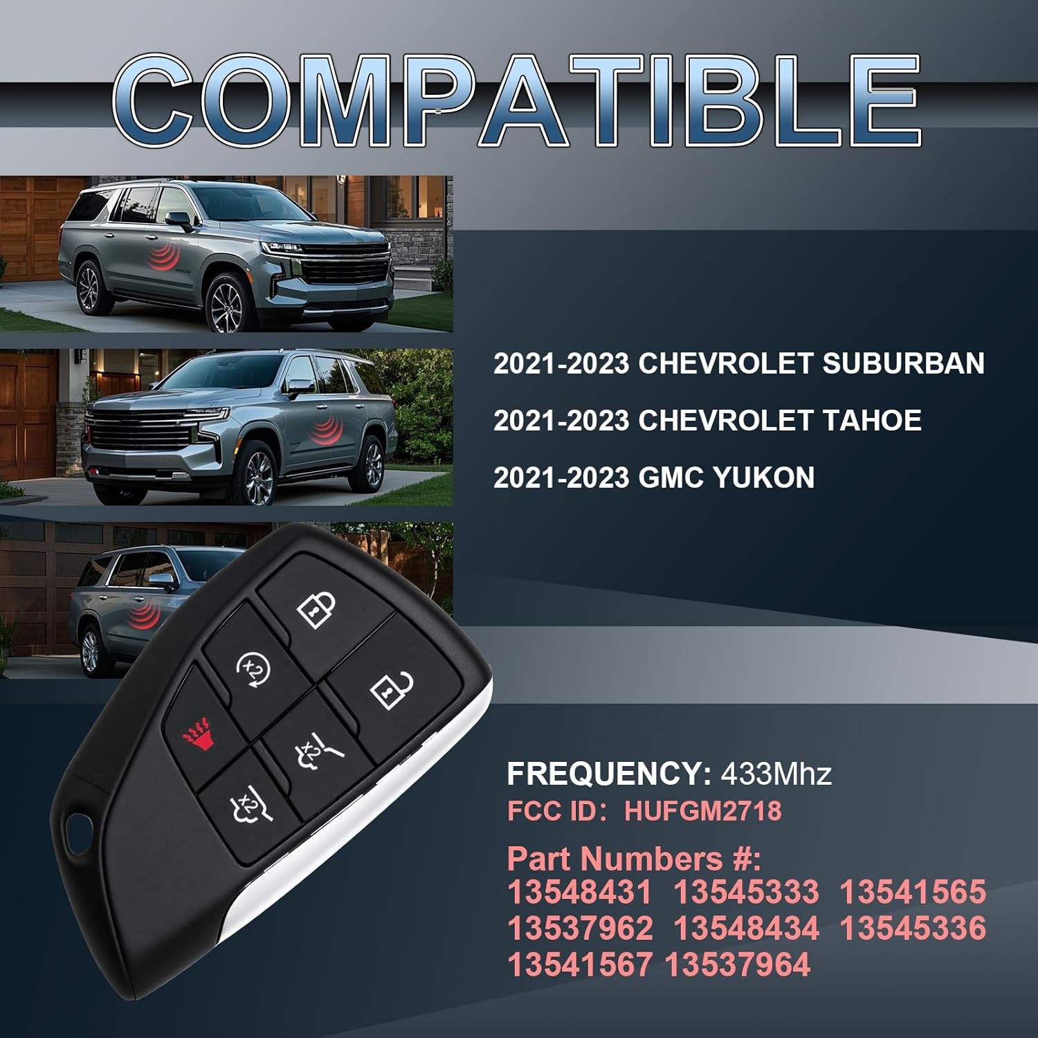 Key Fob Keyless Car Remote Entry Remote 6 Button Vehicles Replacement for 2021-