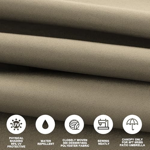 Patio Umbrella Replacement Canopy Only,Outdoor Khaki 9ft-8ribs Cover only
