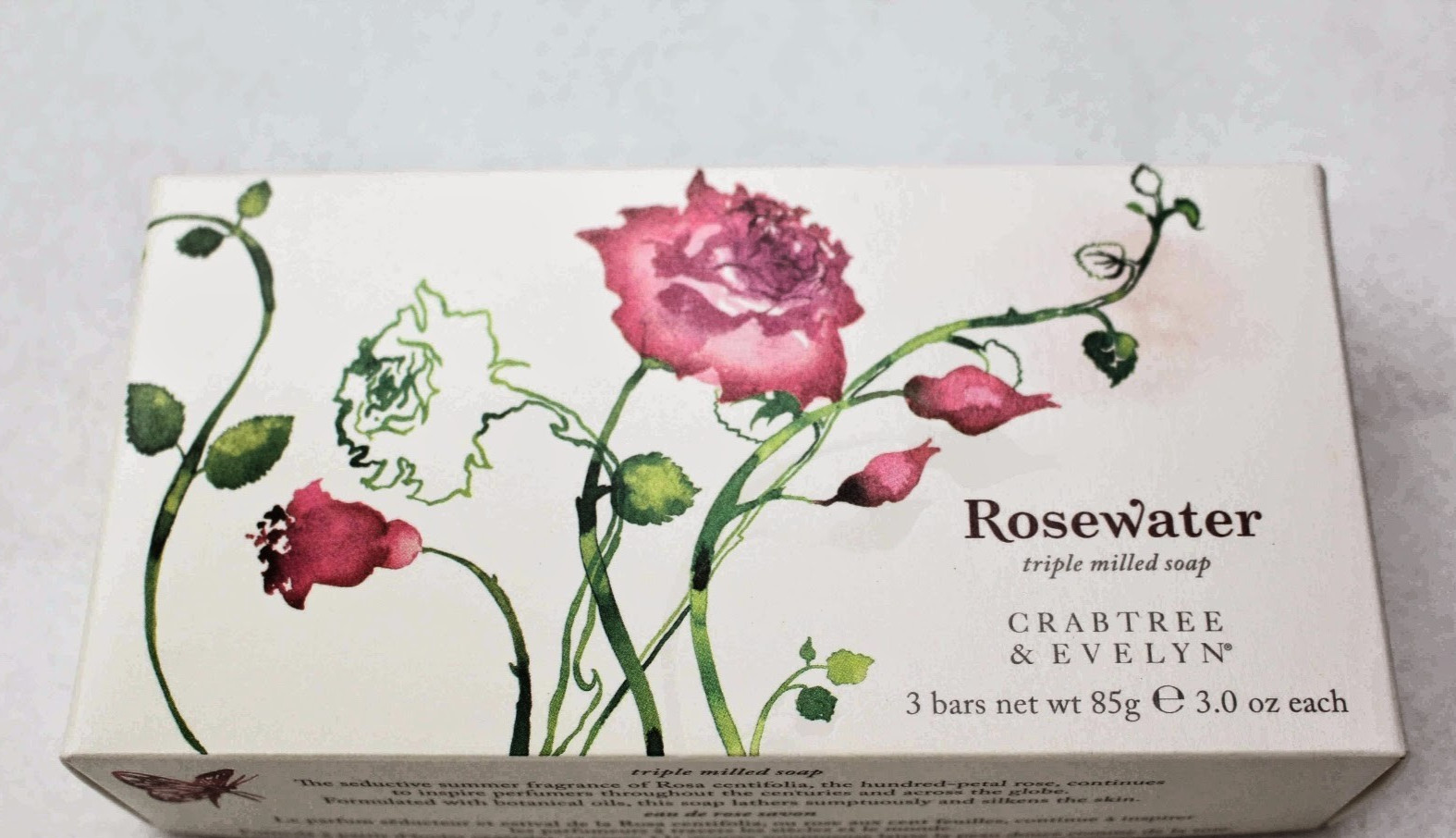 как выглядит CRABTREE EVELYN SET OF 3 ROSEWATER TRIPLE MILLED SOAP BARS 3 oz EA NEW IN BOX фото