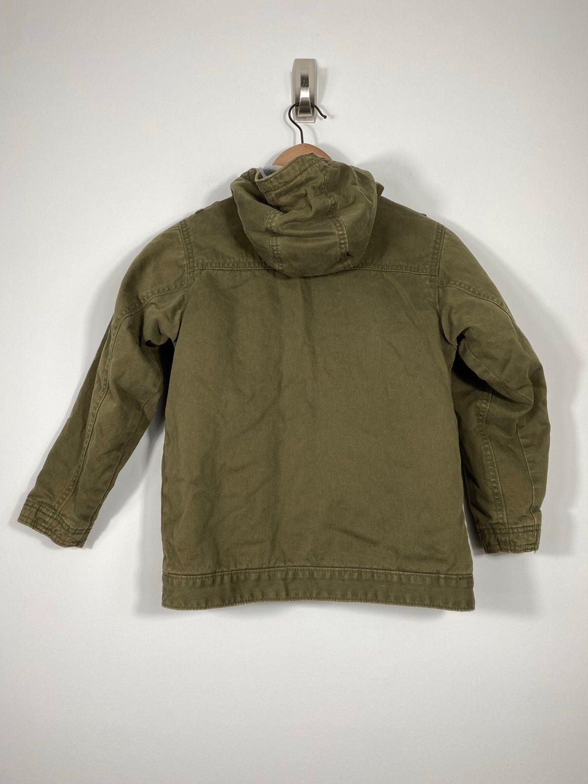 Old Navy Boys Utility Jacket Size Small Olive Green Hooded Canvas Coat
