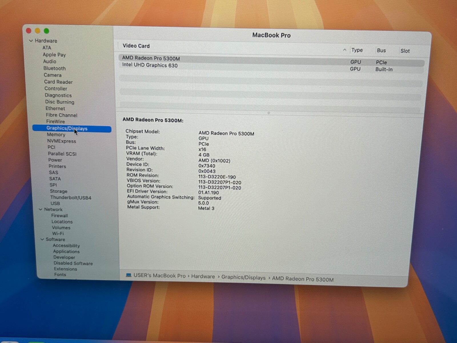 GPU: AMD Radeon Pro 5300M, Intel UHD Graphics 630