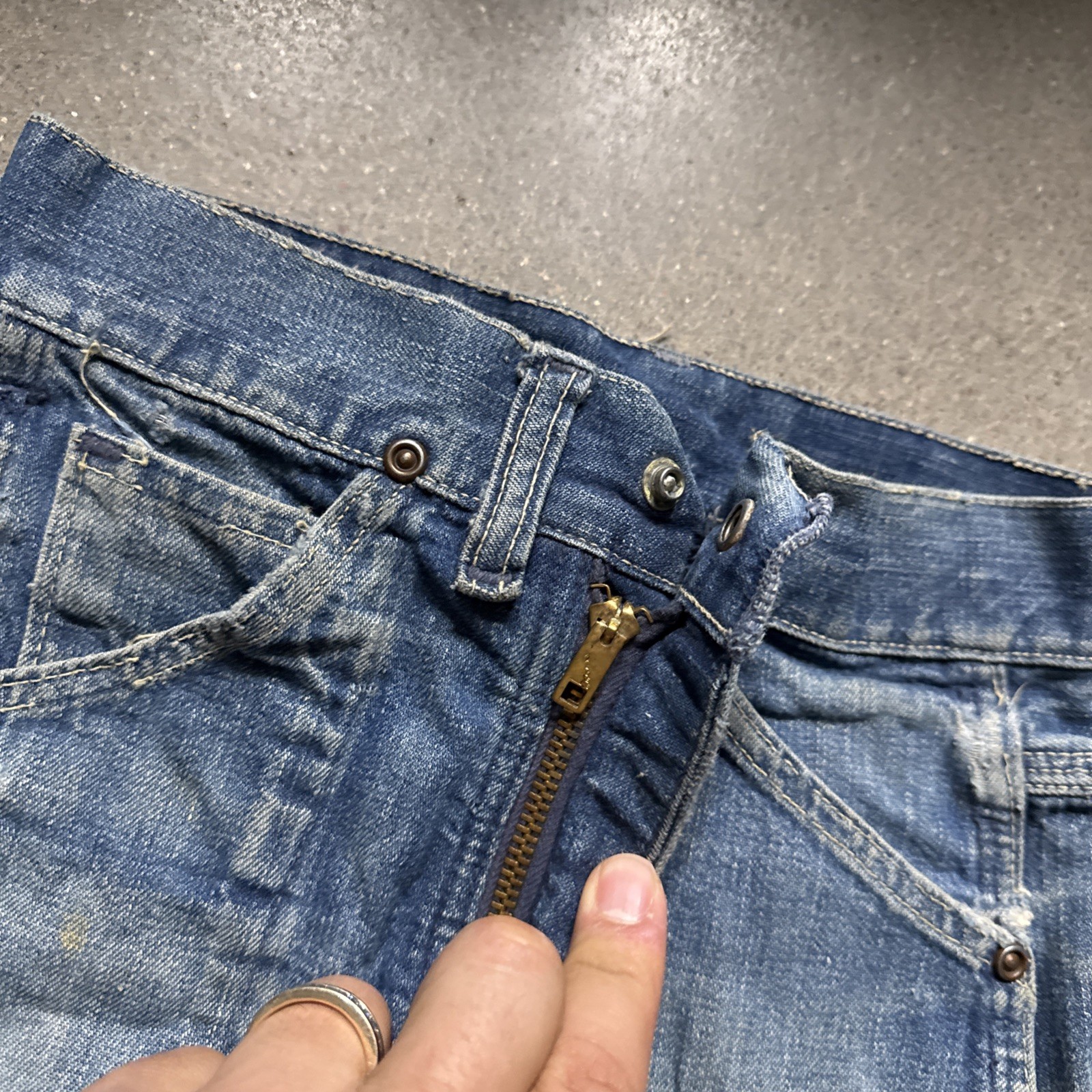 как выглядит True Vintage 1940s 1950s Denim Jeans Kids Distressed Farm Pants фото