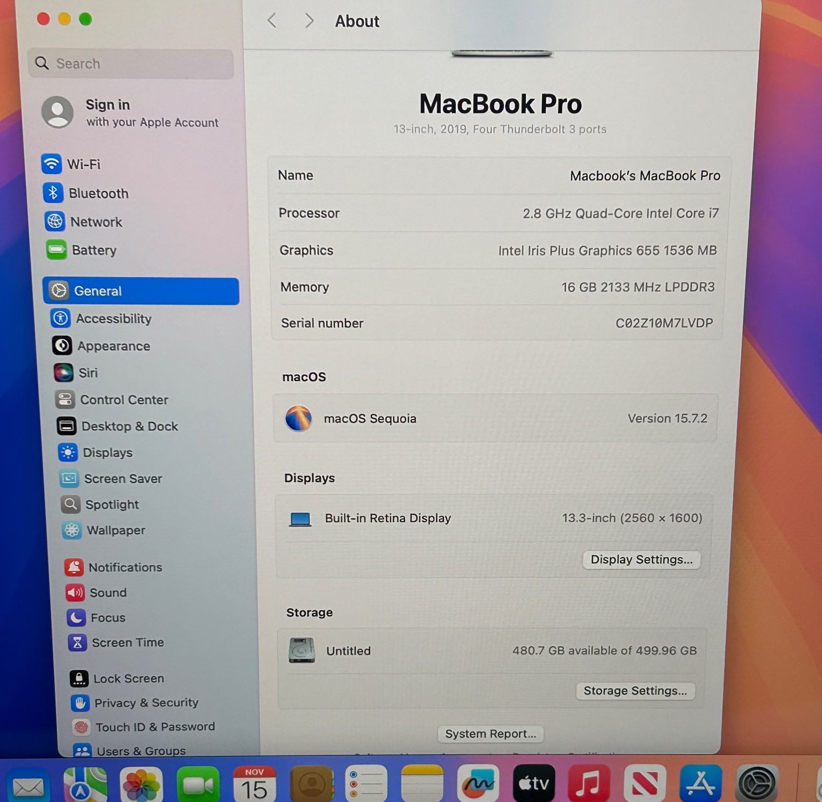 Apple MacBook Pro 13 2019 A1989 i7 9th Quad-Core 16GB RAM 512GB SSD Iris Plus