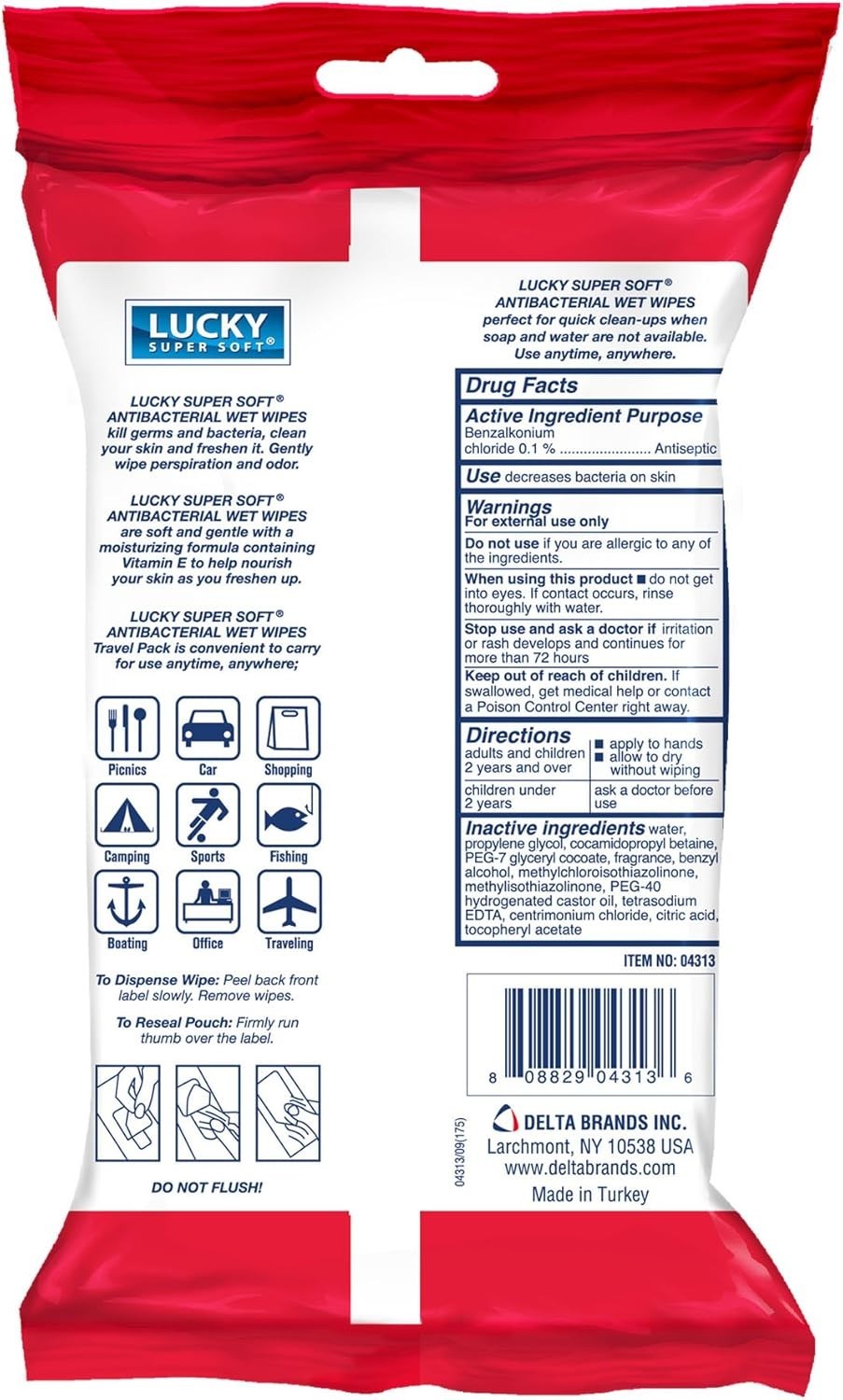 6 Pack - Lucky Super Soft Antibacterial Wet Wipes 40 Count