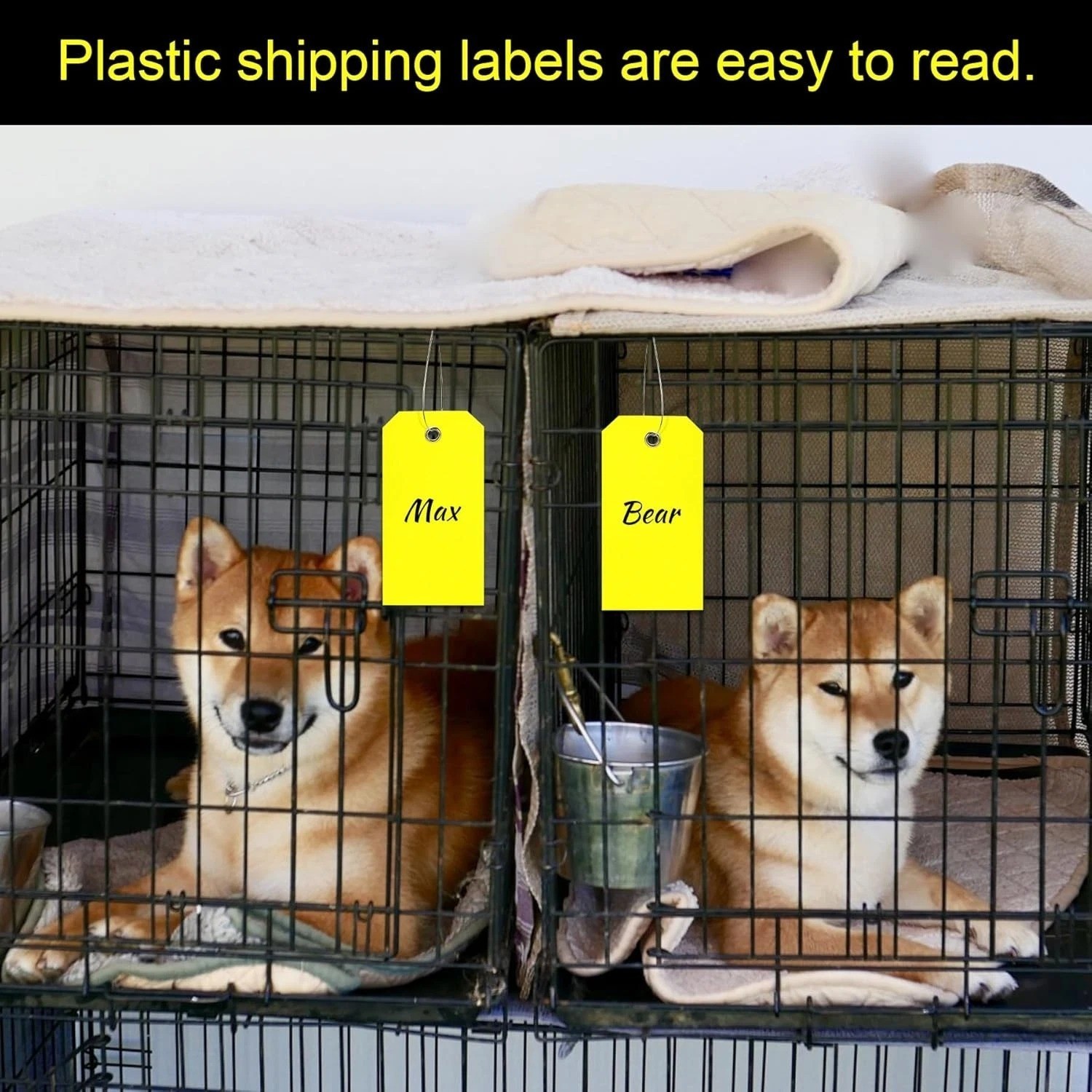 100Pcs Yellow Plastic Shipping Tags with Wire Waterproof ID Inventory Labels NEW
