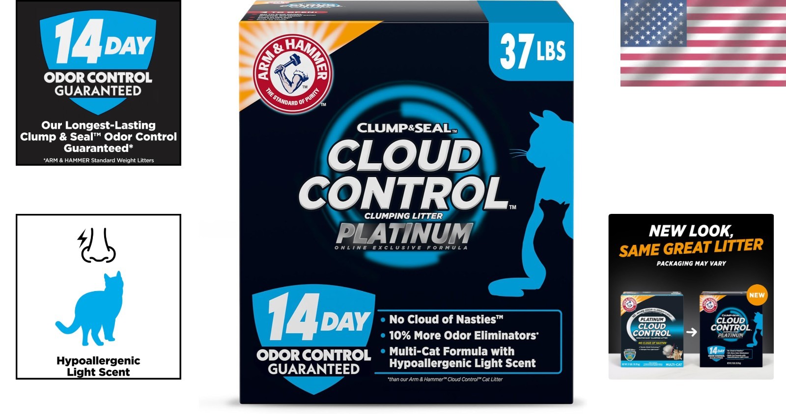 Cloud Control Platinum Clumping Cat Litter - 14-Day Odor Defense with Hypoall...