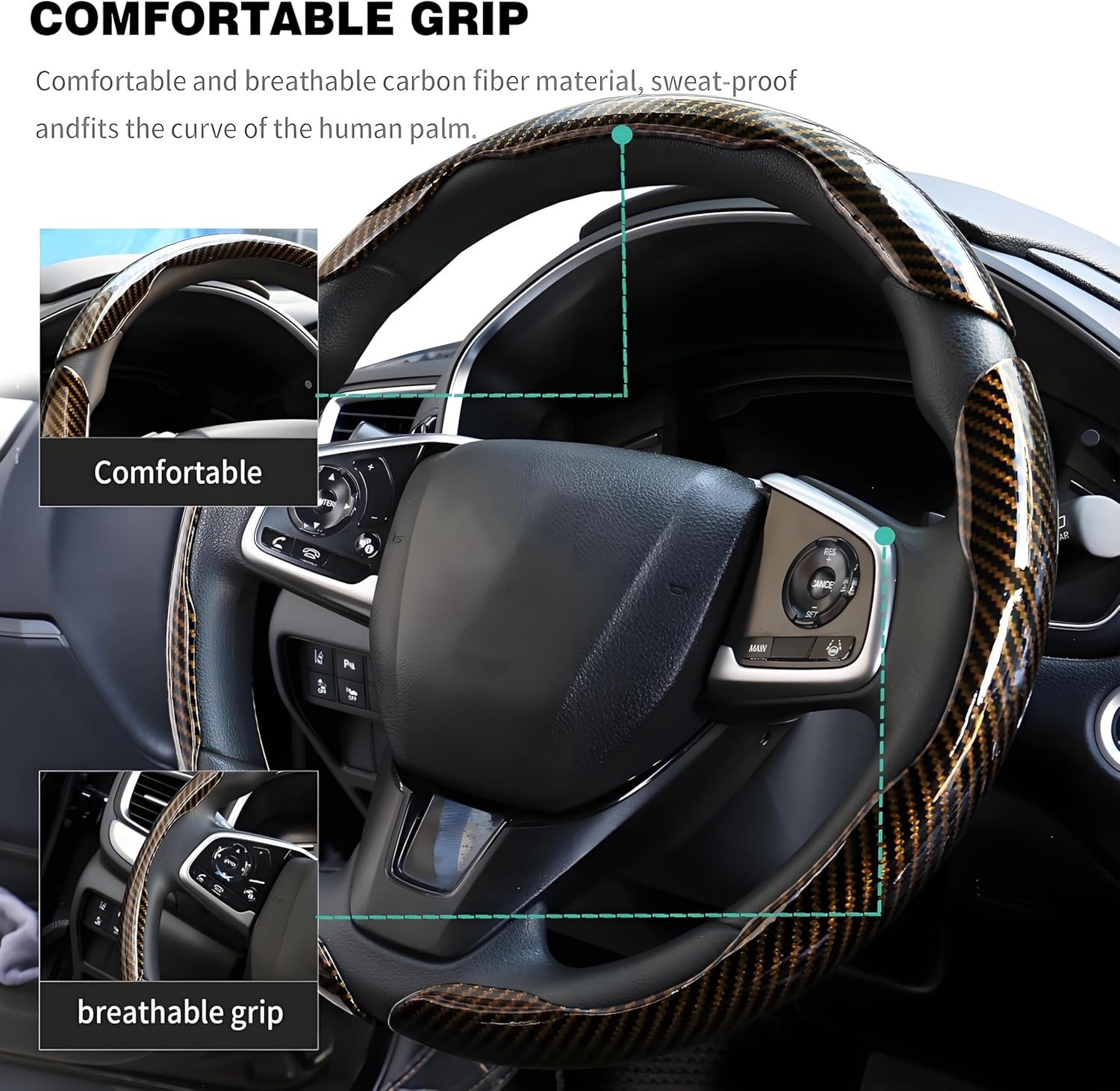 • 3 Pcs Carbon Fiber Car Steering Wheel Cover, Anti-Skid Scratch-Proof,Segmented