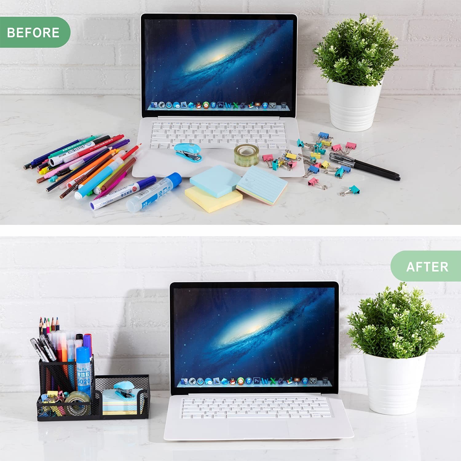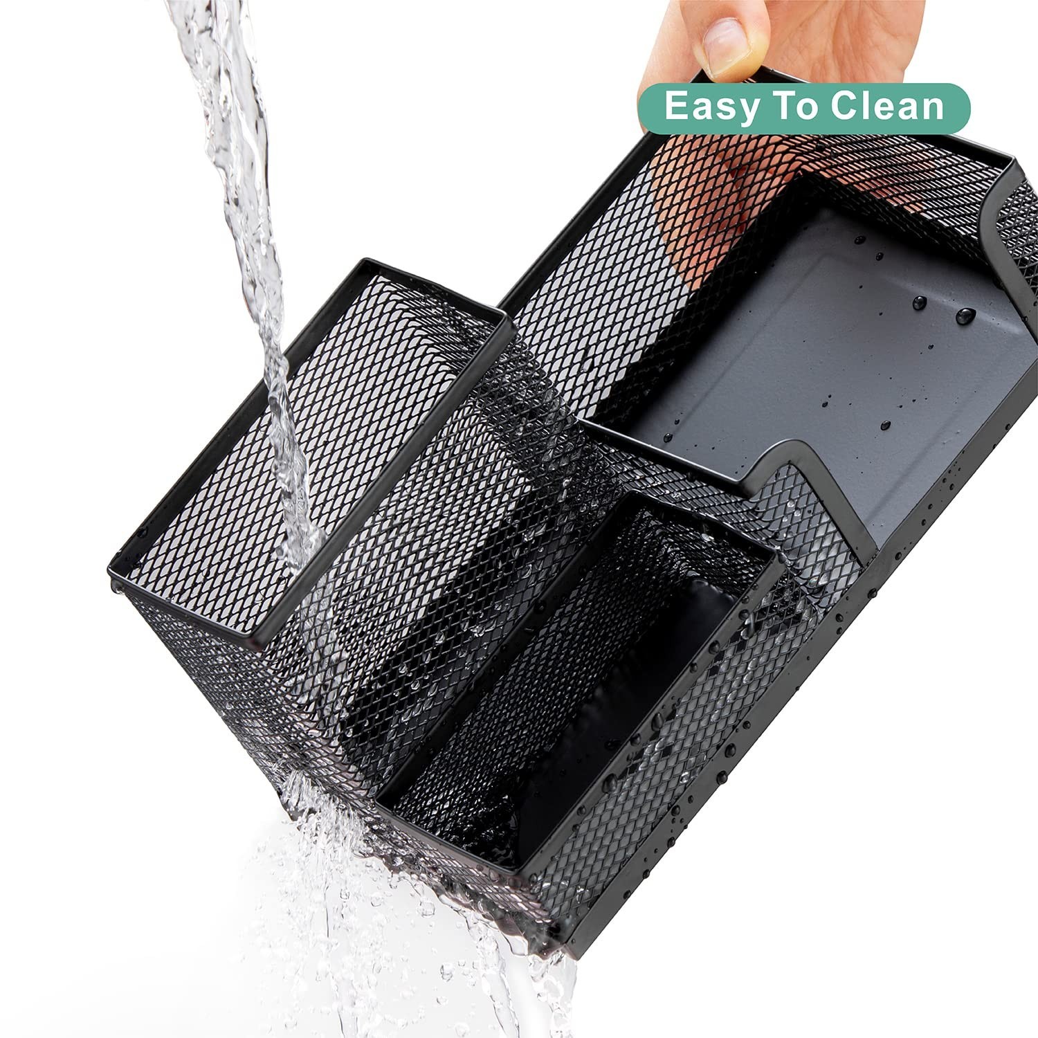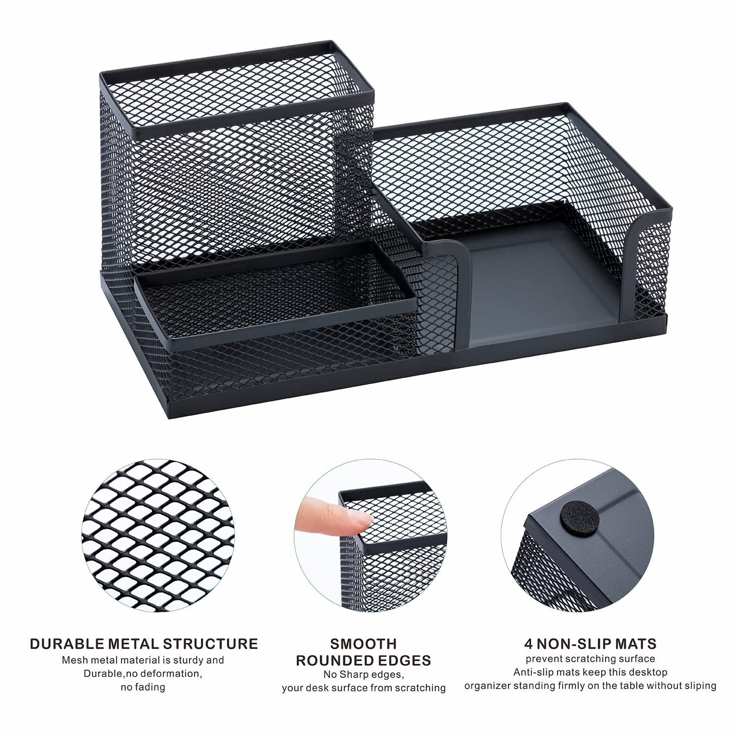 Black Mesh Pen Holder - Multipurpose Mesh Desk Organizers Large Capacity Offi...