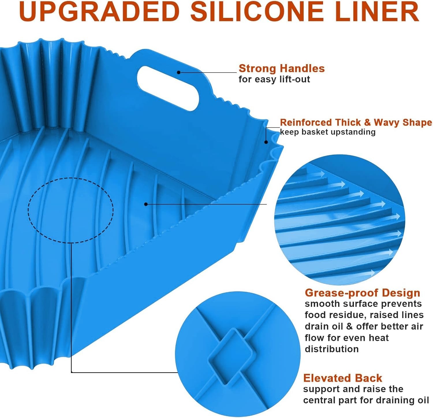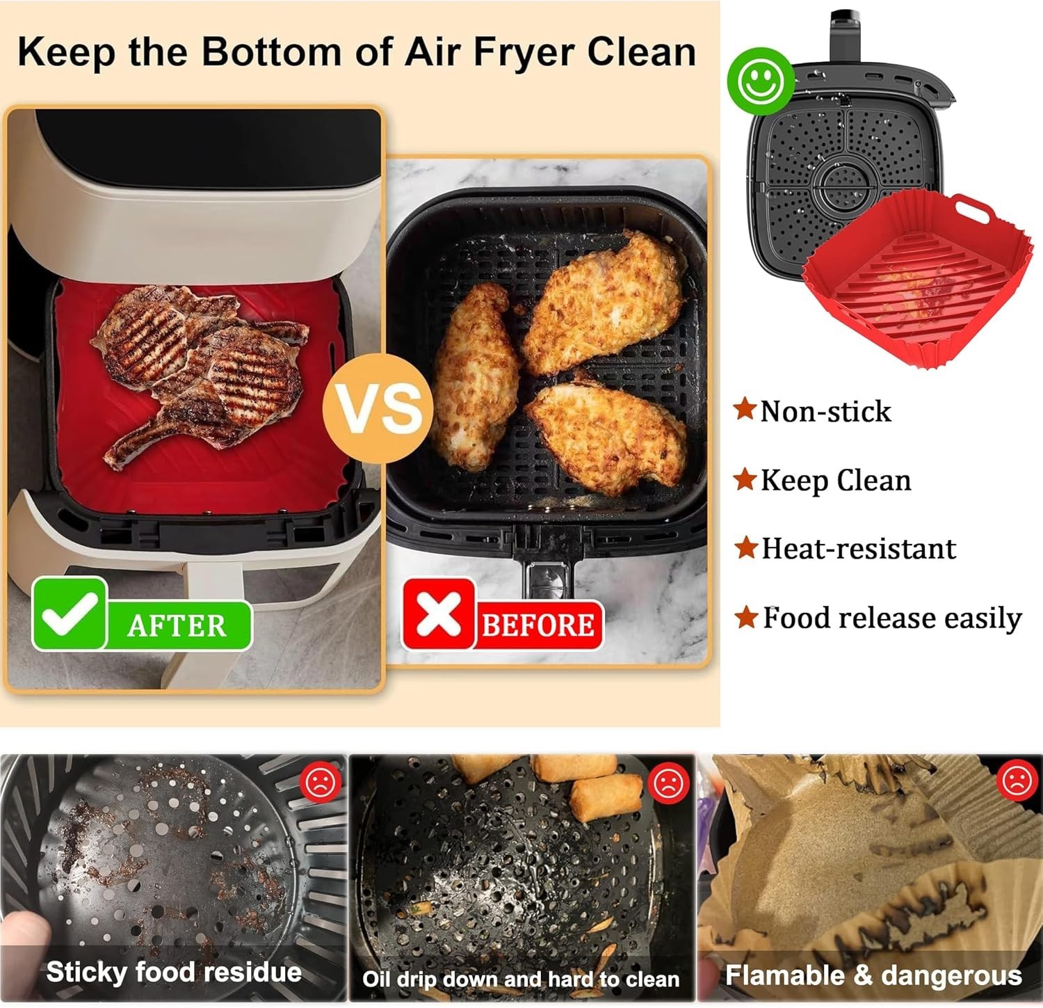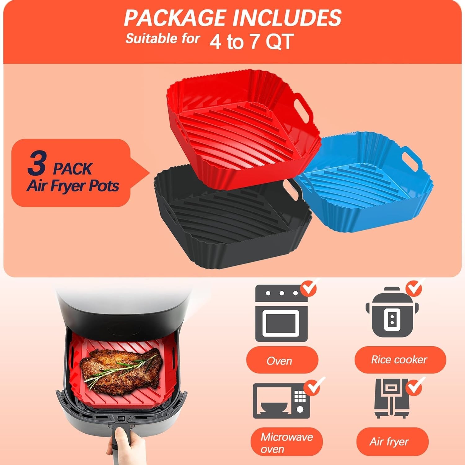 3-Pack Silicone Air Fryer Liners, Square, Heat-Resistant, Reusable