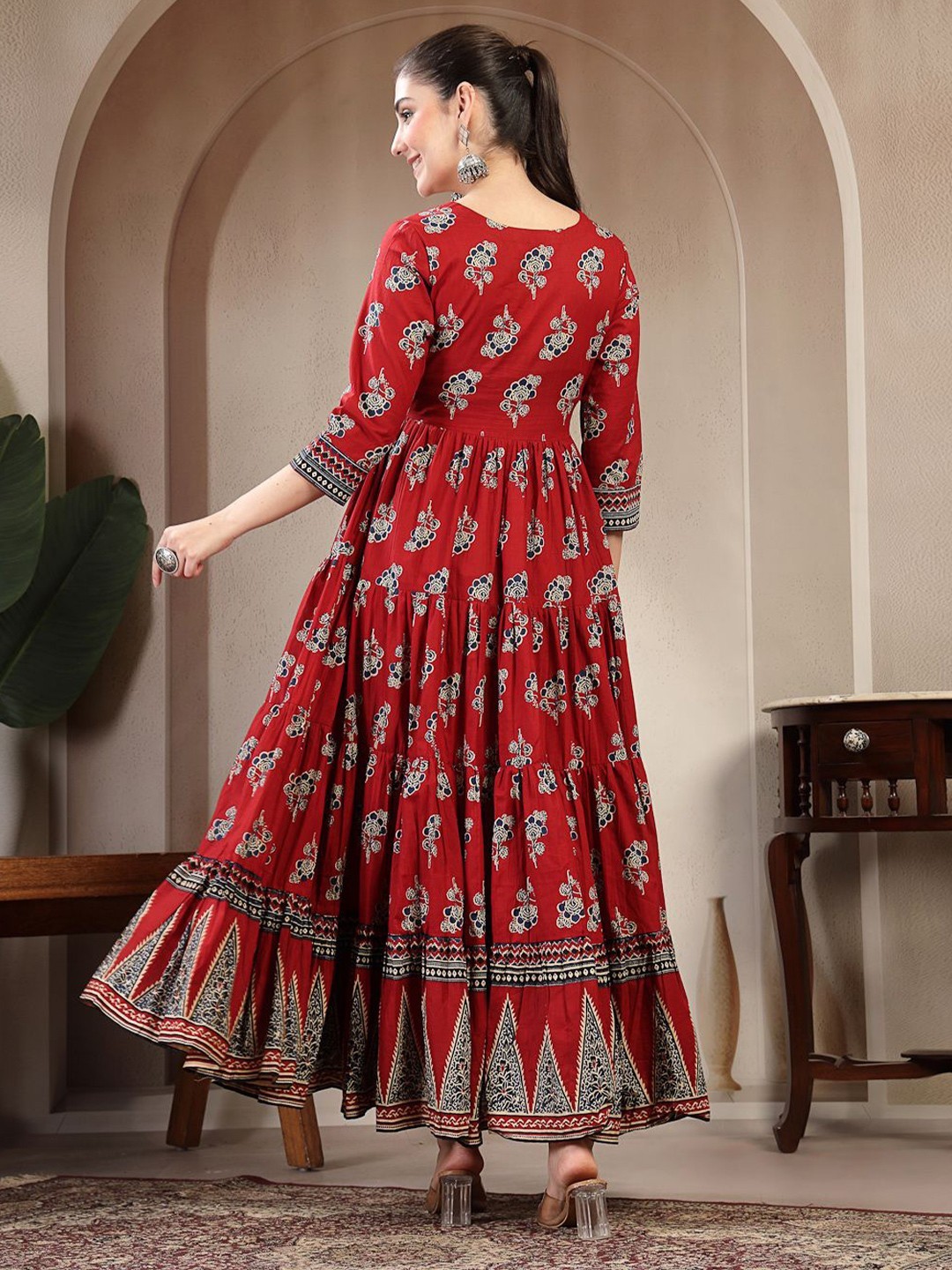 Indian Women Cotton Maroon Printed Anarkali Festive Designer Kurta Kurti Dress