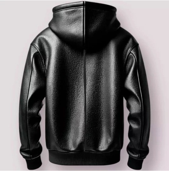 Men's Black Premium Leather Hoodie Handmade Genuine Lambskin Leather Jacket