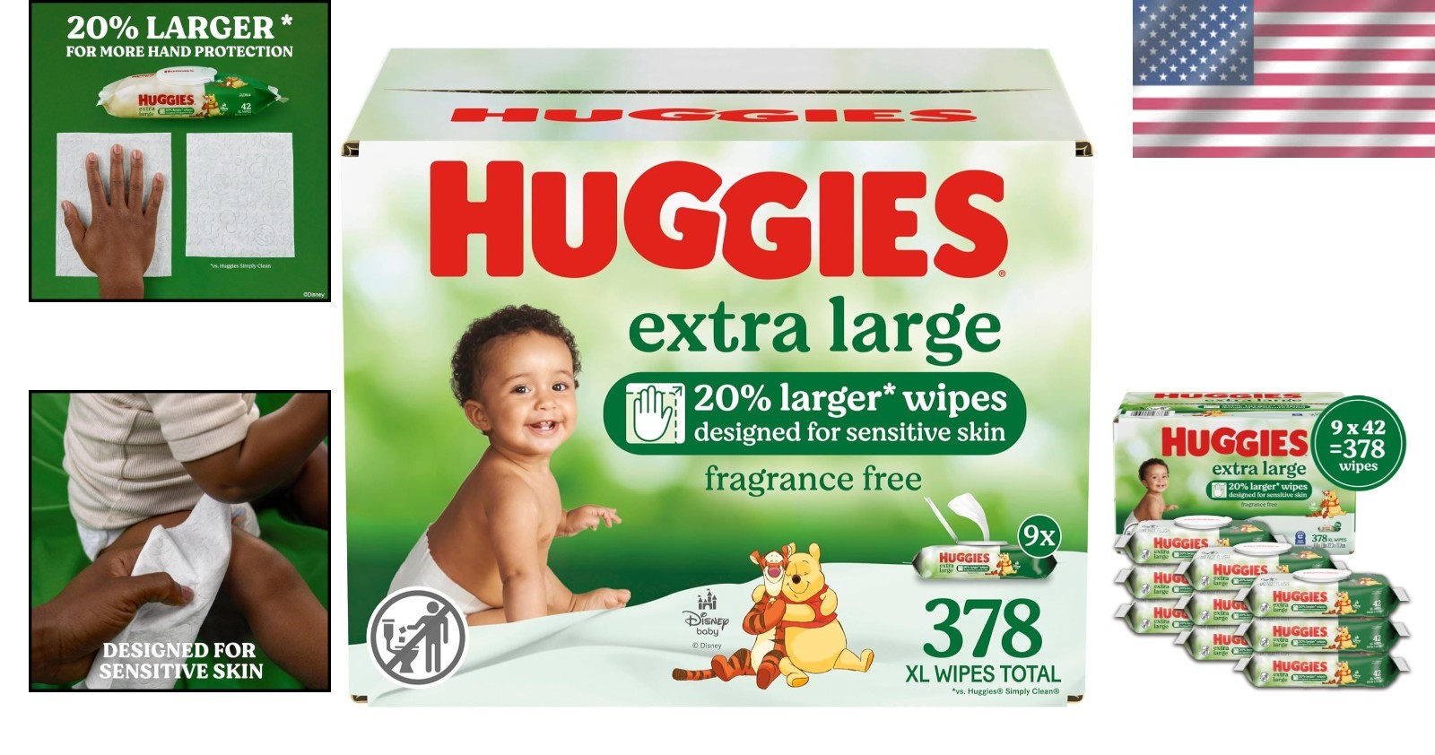 378 Unscented Extra Large Baby Wipes - Ideal for Big Messes Hypoallergenic