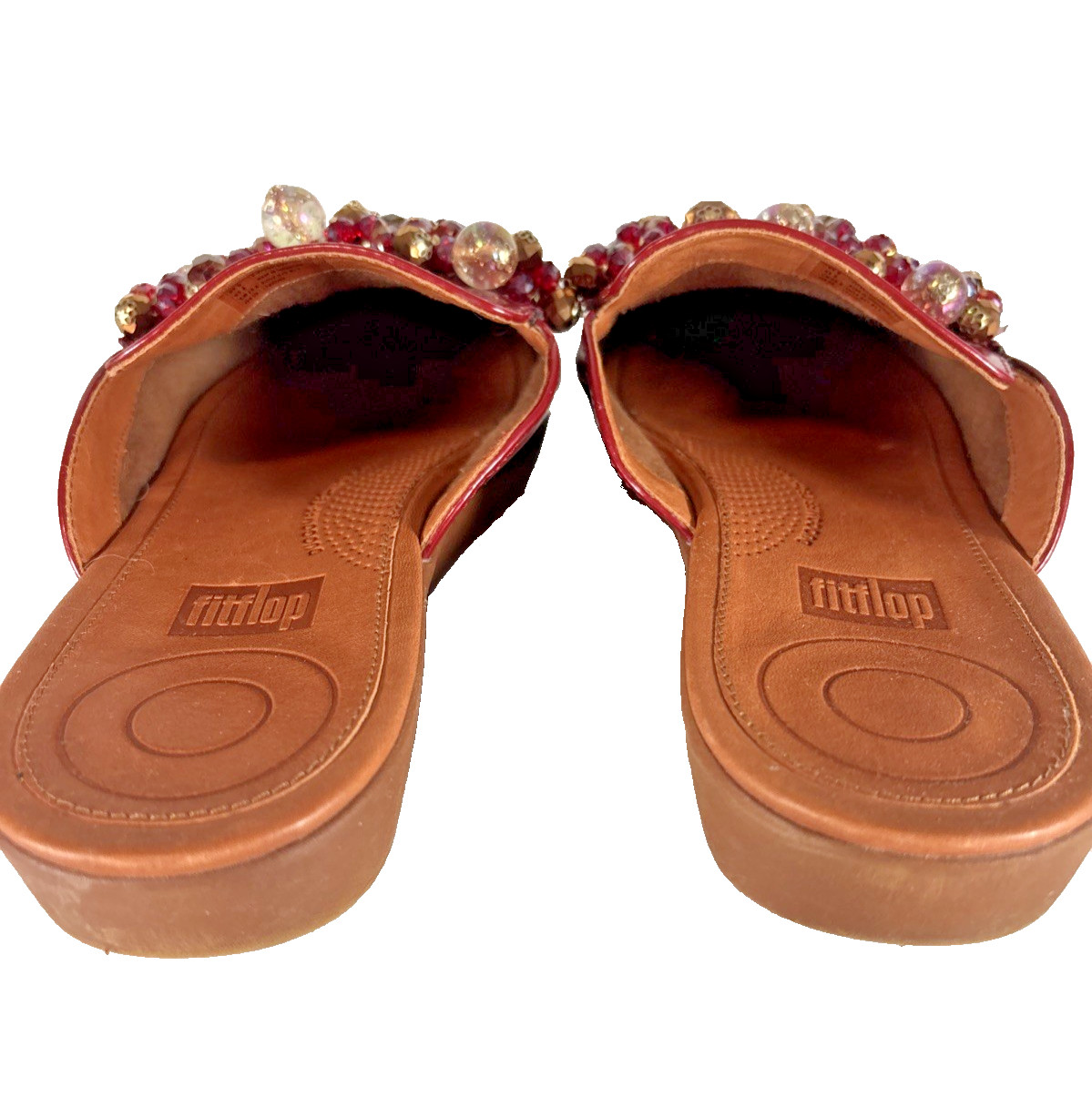 FitFlop Serene Deco Fire Red Patent Leather Embellished Mules Women s 8