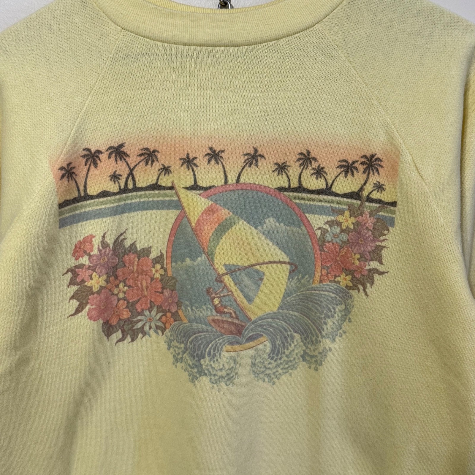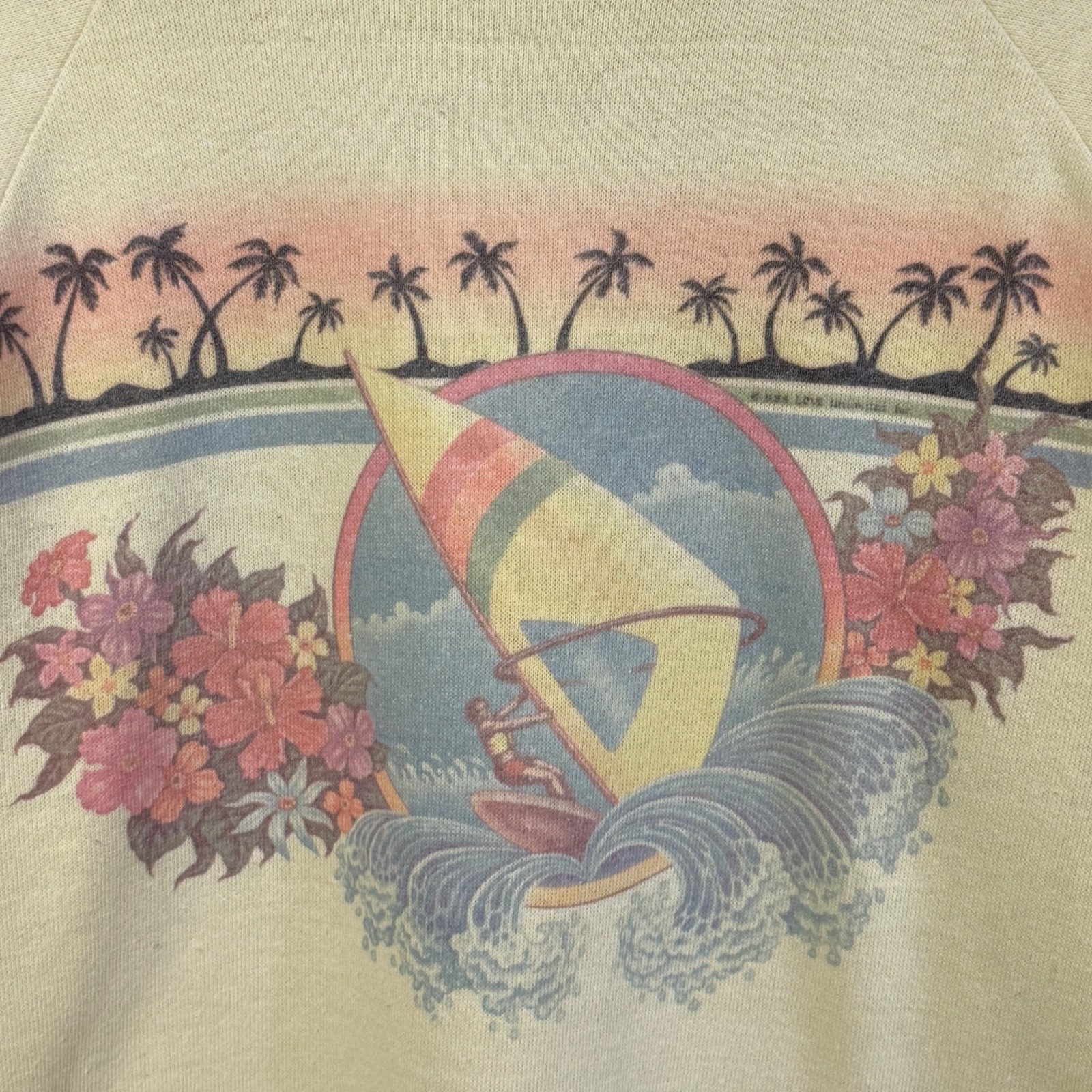 Medium 1970s/1980s windsurfing Healthknit raglan sweatshirt w/ floral sleeve hit