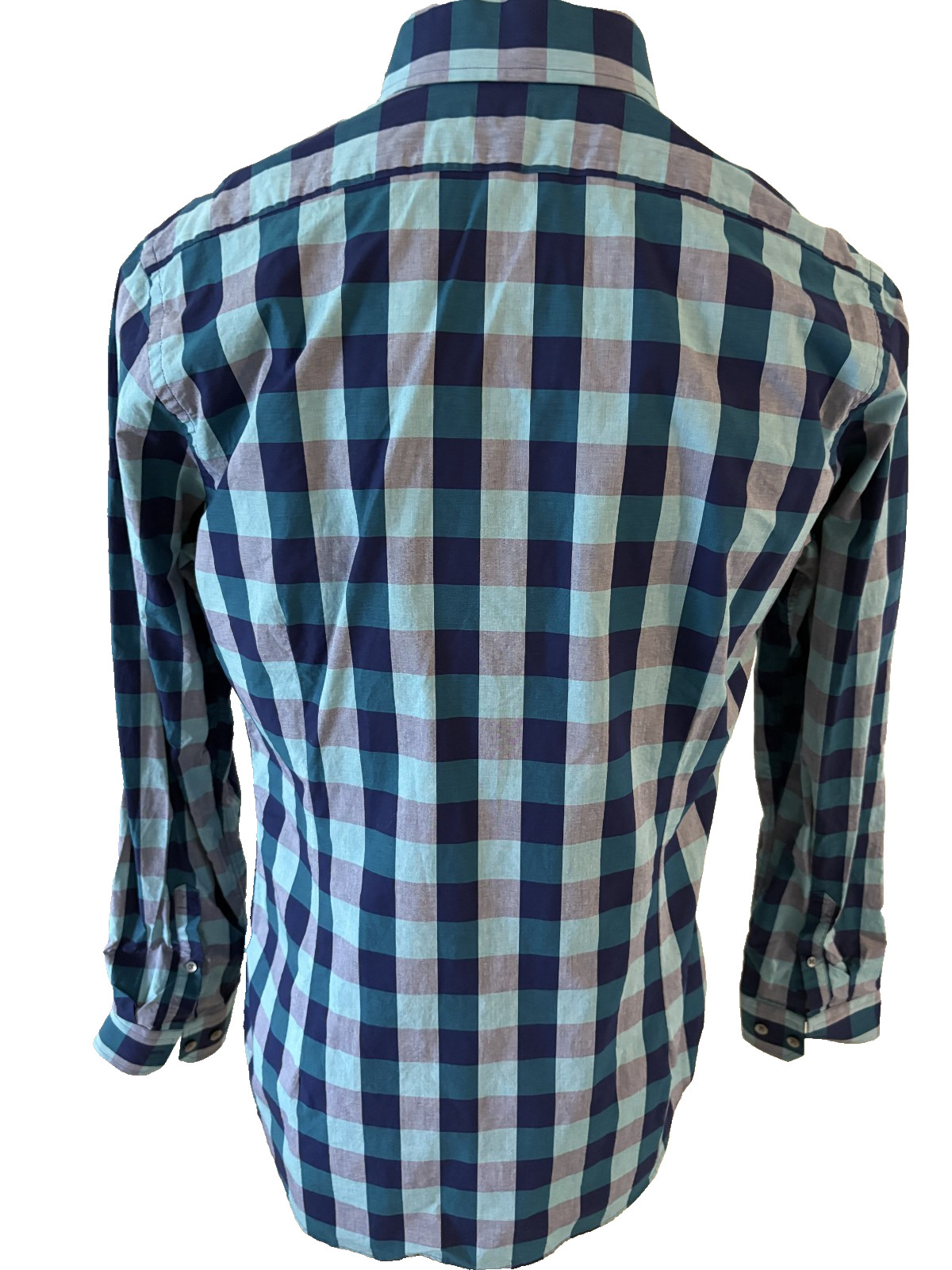 как выглядит Express Mens Blue Plaid Button Down Modern Fit Long Sleeve Shirt Size L 16-16.5 фото