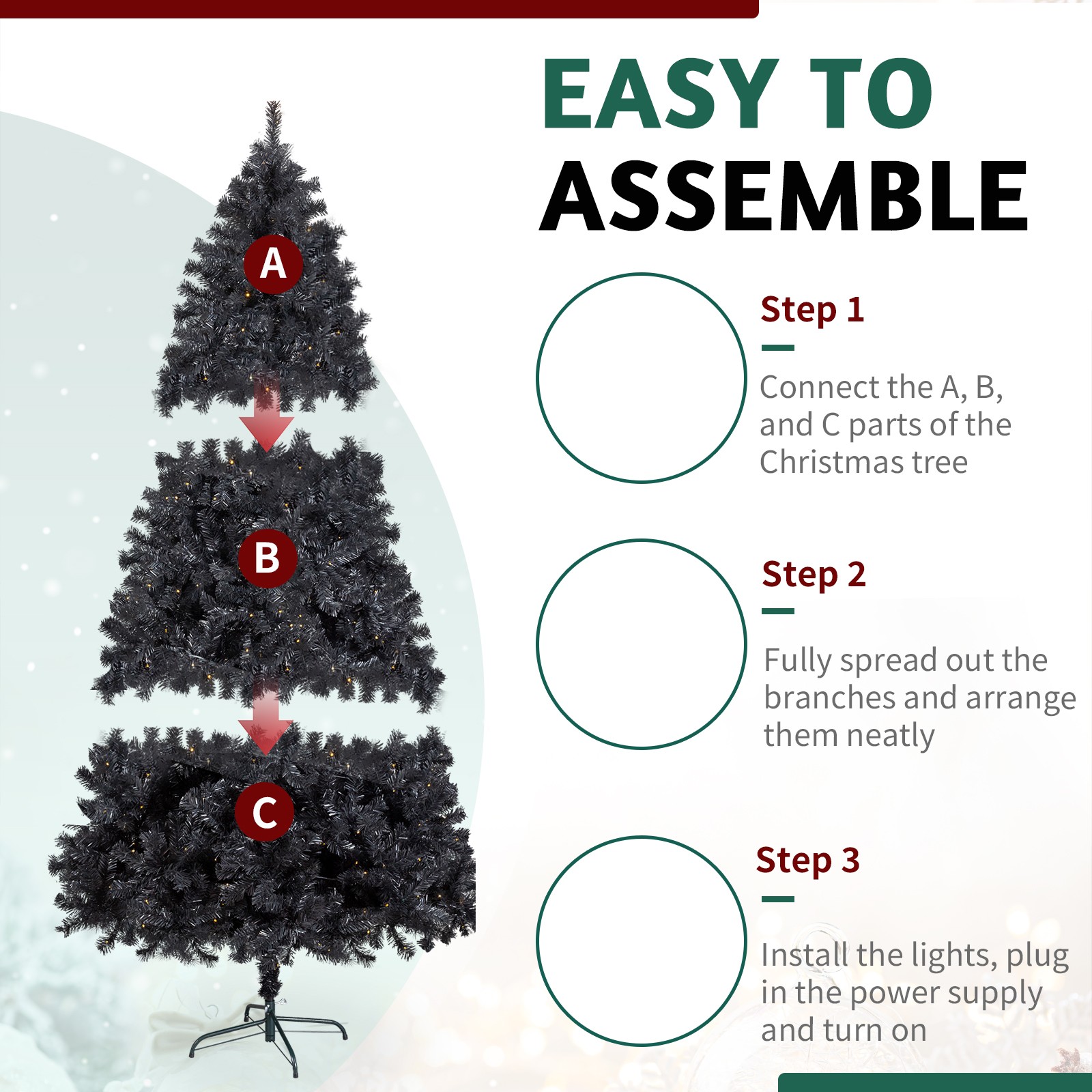 Christmas Black Tree 7.5 FT with Lights, Ornaments for In/Outdoor Holiday Decor