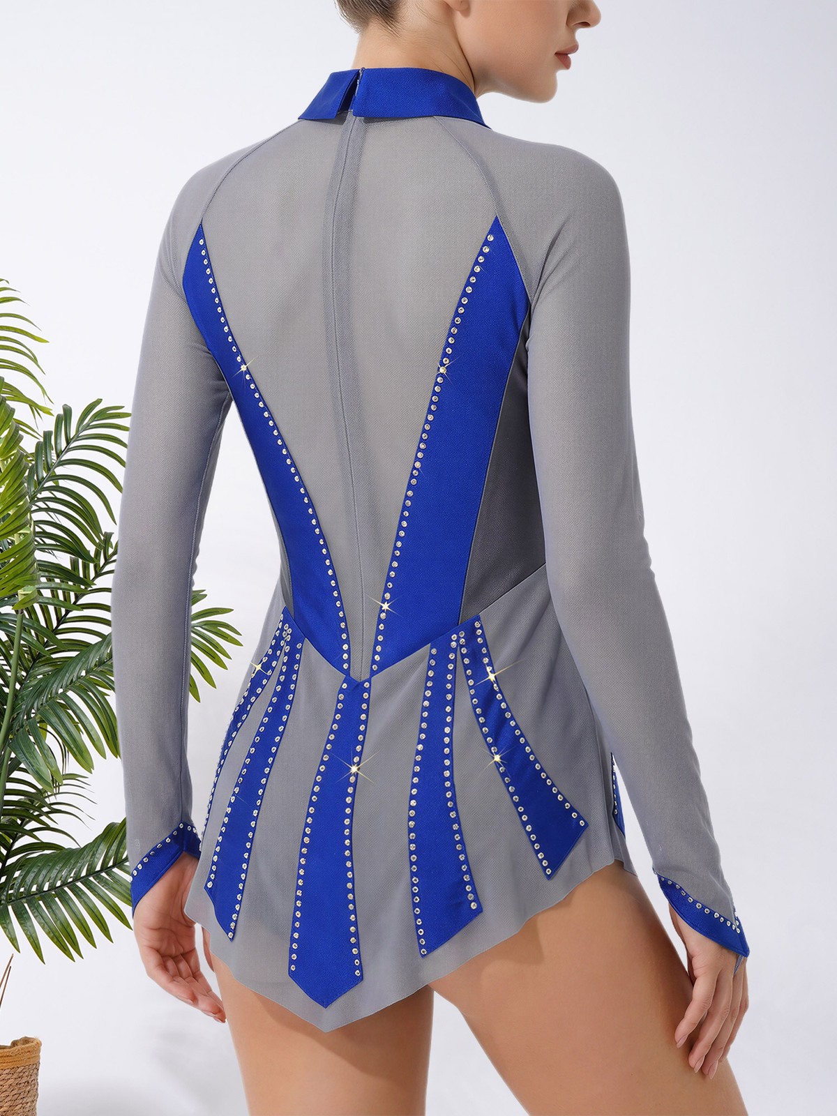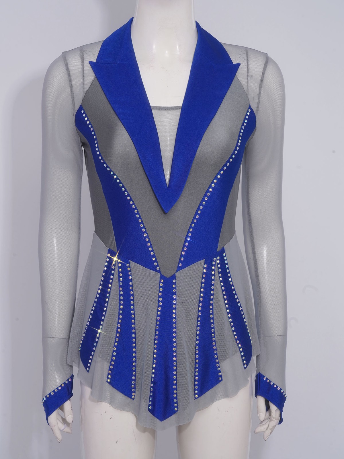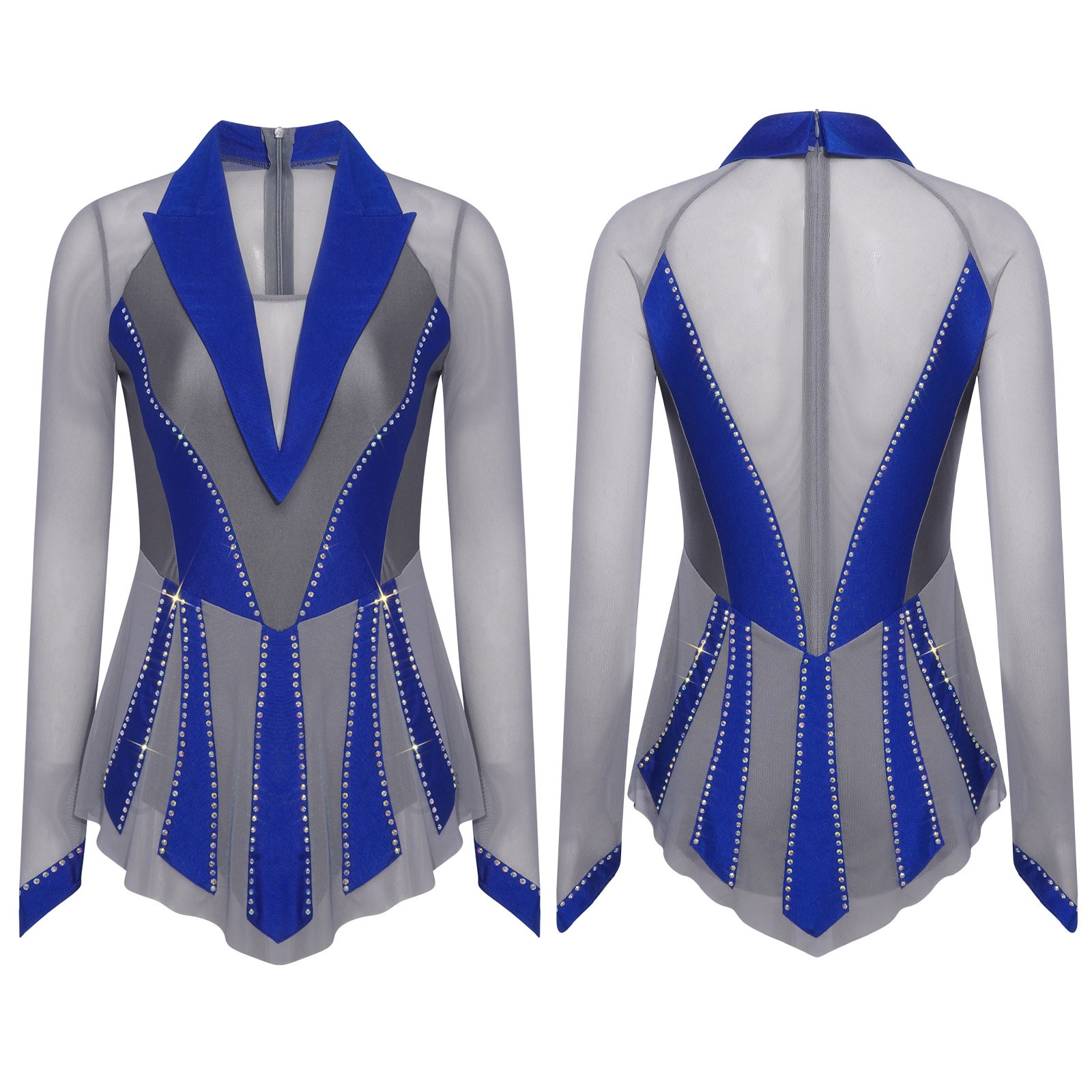 как выглядит Women Bodysuit Figure Skating Dress Long Sleeve Costume Rhinestone Dancewear фото
