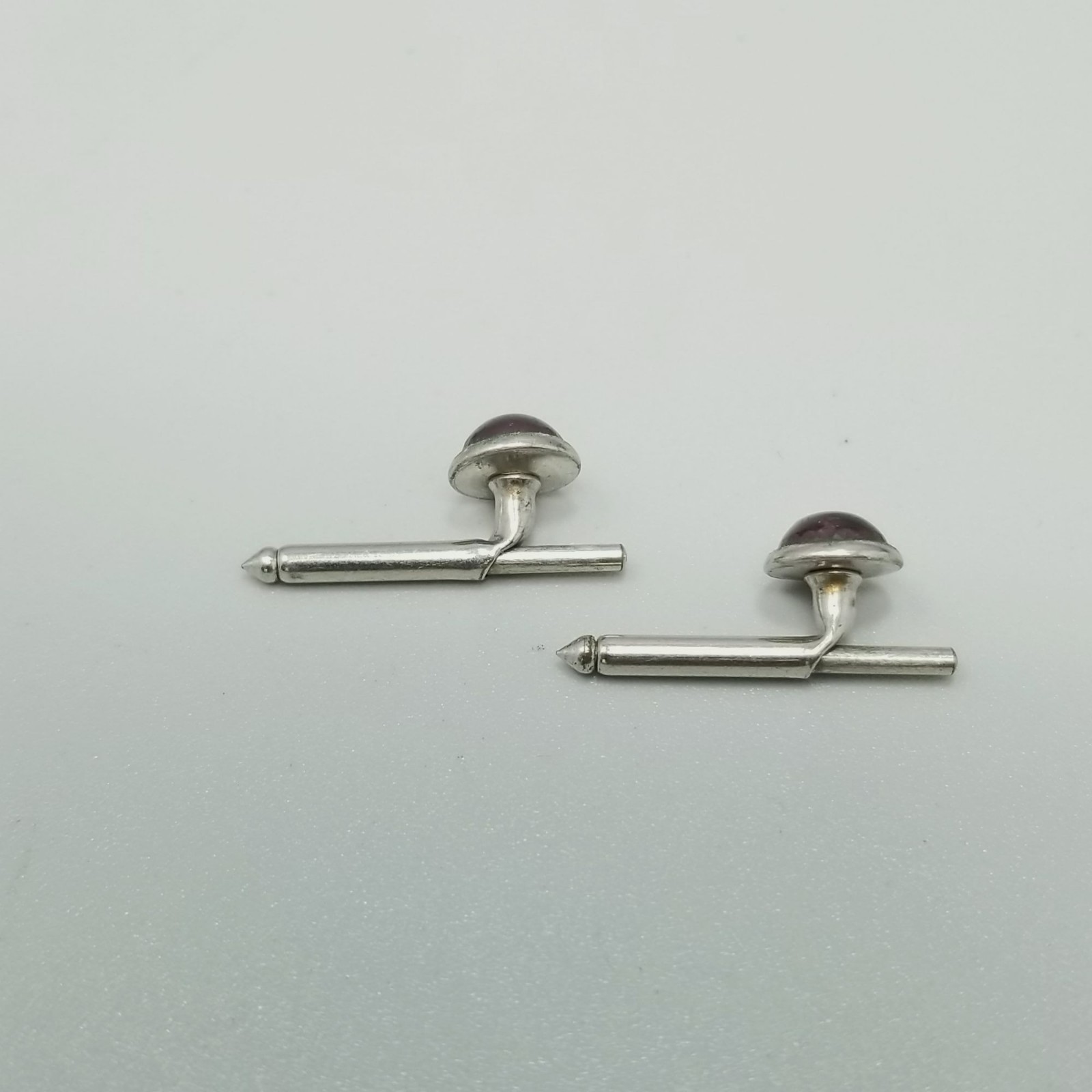 как выглядит Vintage Purple Foiled Glass Shirt Tuxedo Button Studs Silver Tone Set of 2 фото