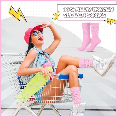 Geyoga Neon Slouch Socks,80s 90s Neon Women's Leg Warmers Extra Long Pink