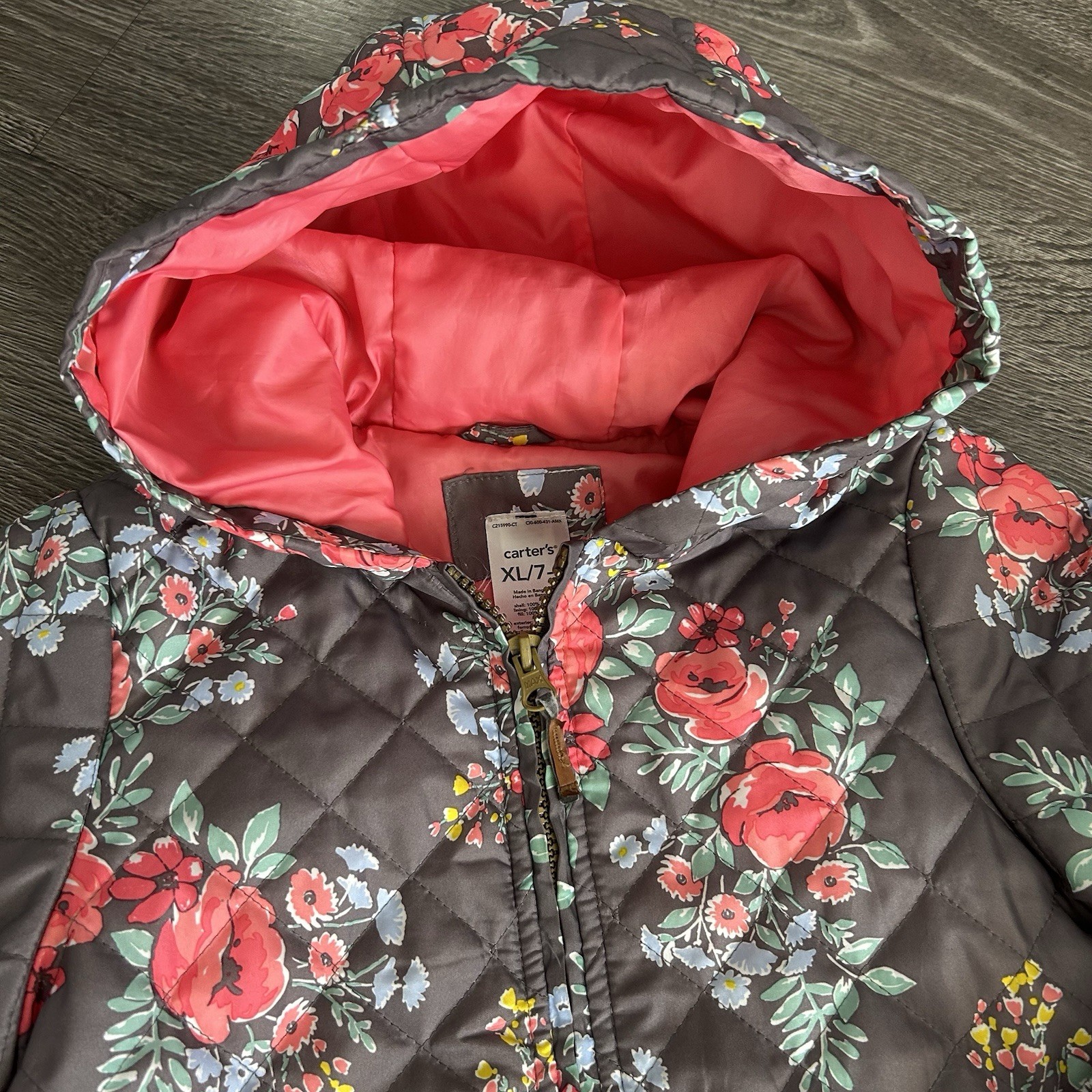 как выглядит Carters QUILTED FLORAL HOODED JACKET Size XL GIRLS FULL ZIPPER FRONT фото