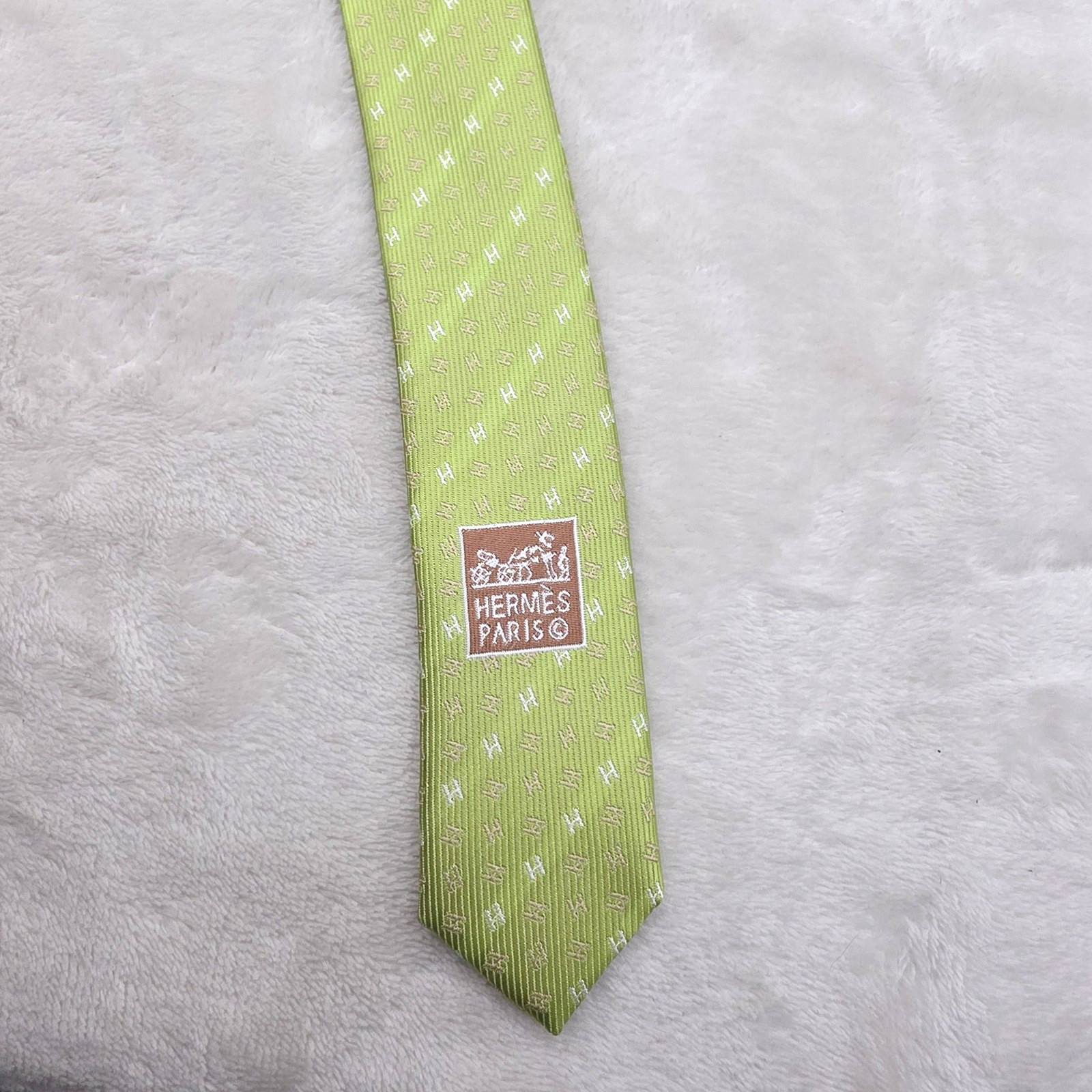как выглядит Hermes Paris Silk Tie Mens Green H Monogram Jacquard 100 Silk Made In France фото