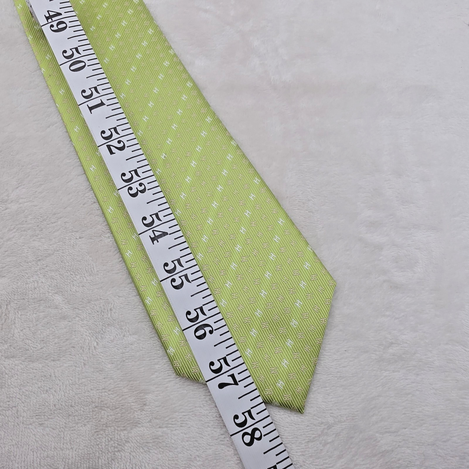 Hermes Paris Silk Tie Mens Green H Monogram Jacquard 100 Silk Made In France