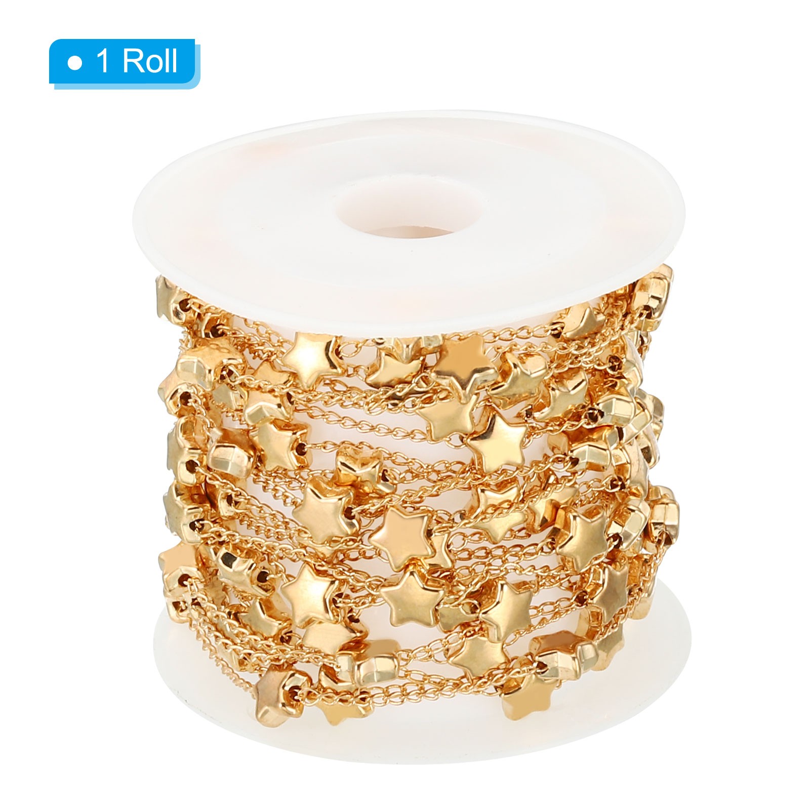 9.8 Feet Star Beading Chain with Spool, Beaded Chain Link for Jewelry, Golden
