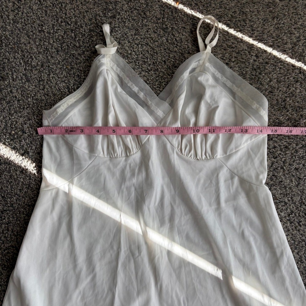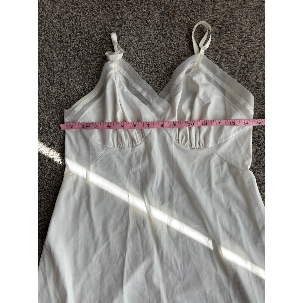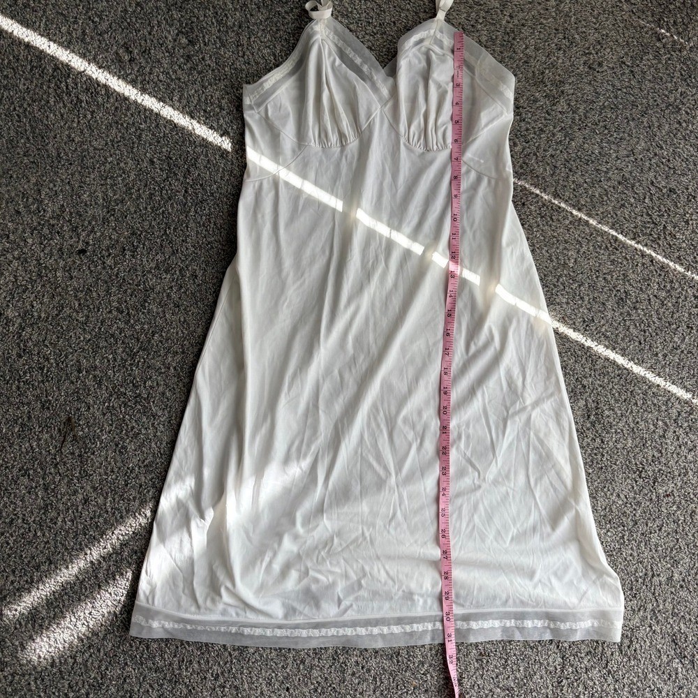 как выглядит Vanity Fair Slip Dress Lingerie Lace Trim Nylon White Vintage Made in USA XS фото