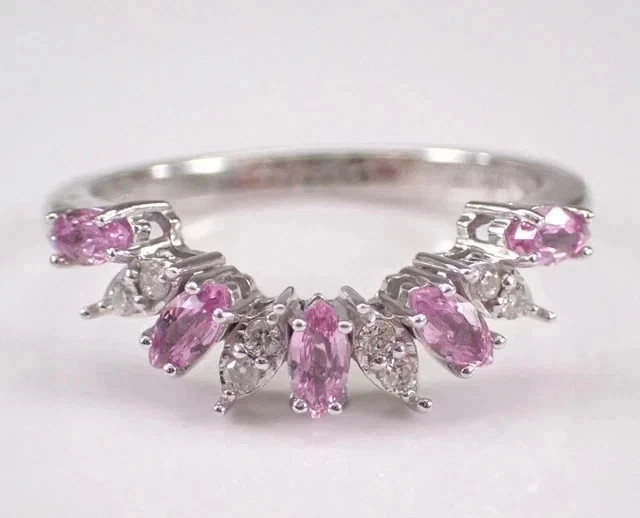 как выглядит 2.30Ct Marquise Cut Lab-Created Pink Sapphire Halo Ring14K White Gold Plated фото
