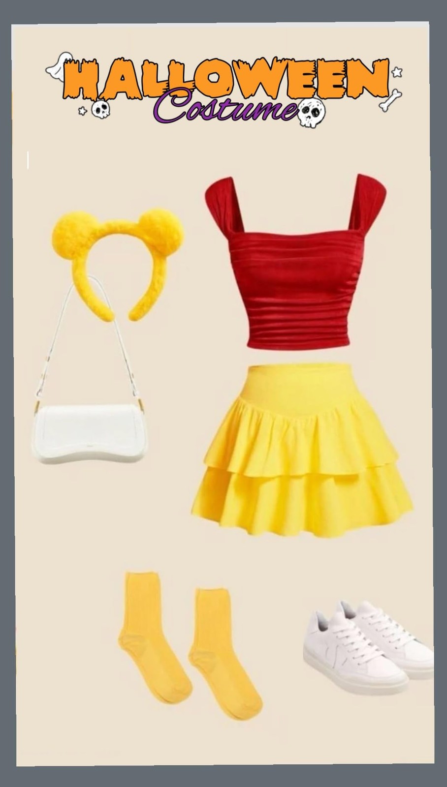 Yellow Bear Ears Headband and Tail Halloween Costume Accessories for Women Ad...