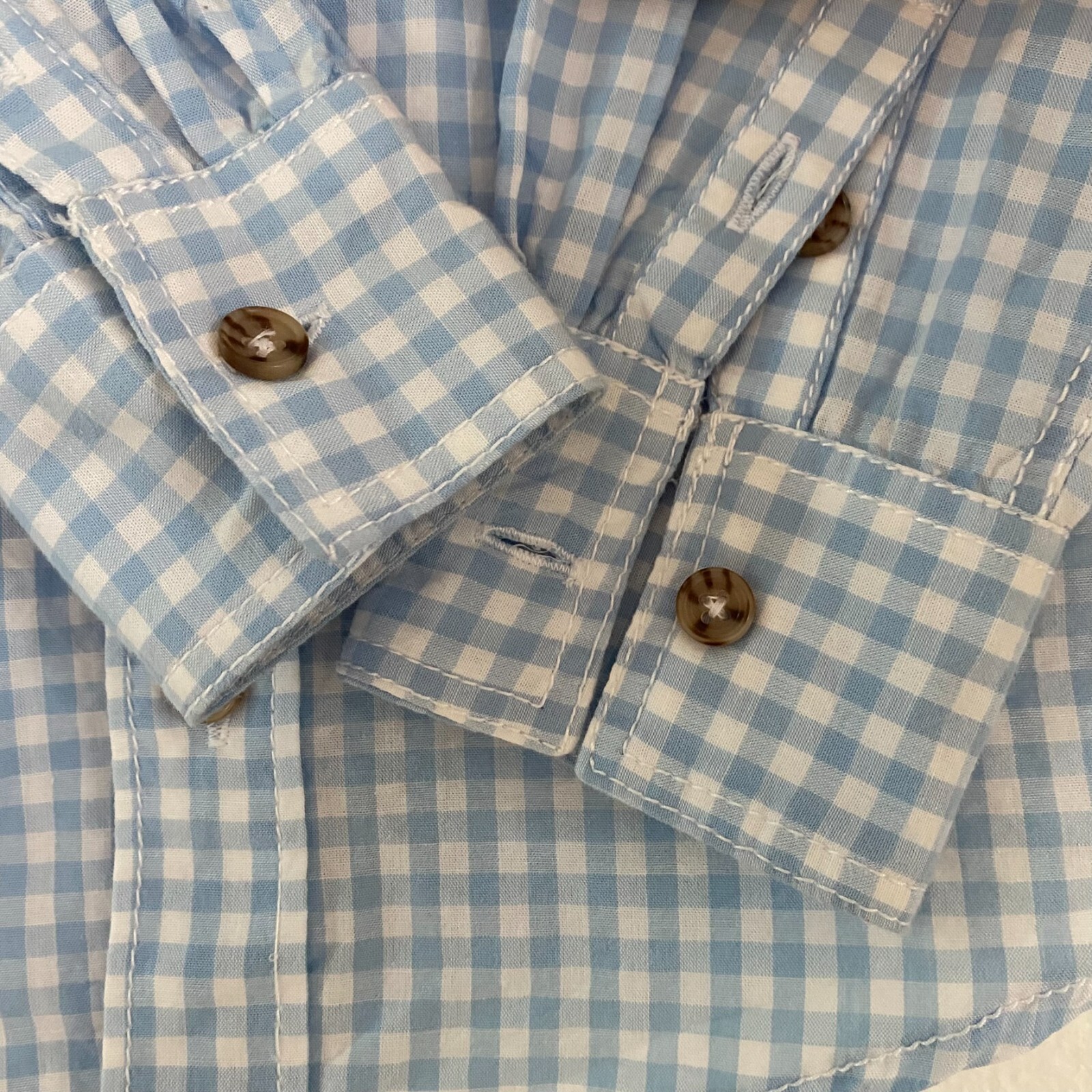 Tommy Bahama Shirt Boys S 5/6 Blue White Check Cotton Button Up Long Sleeve