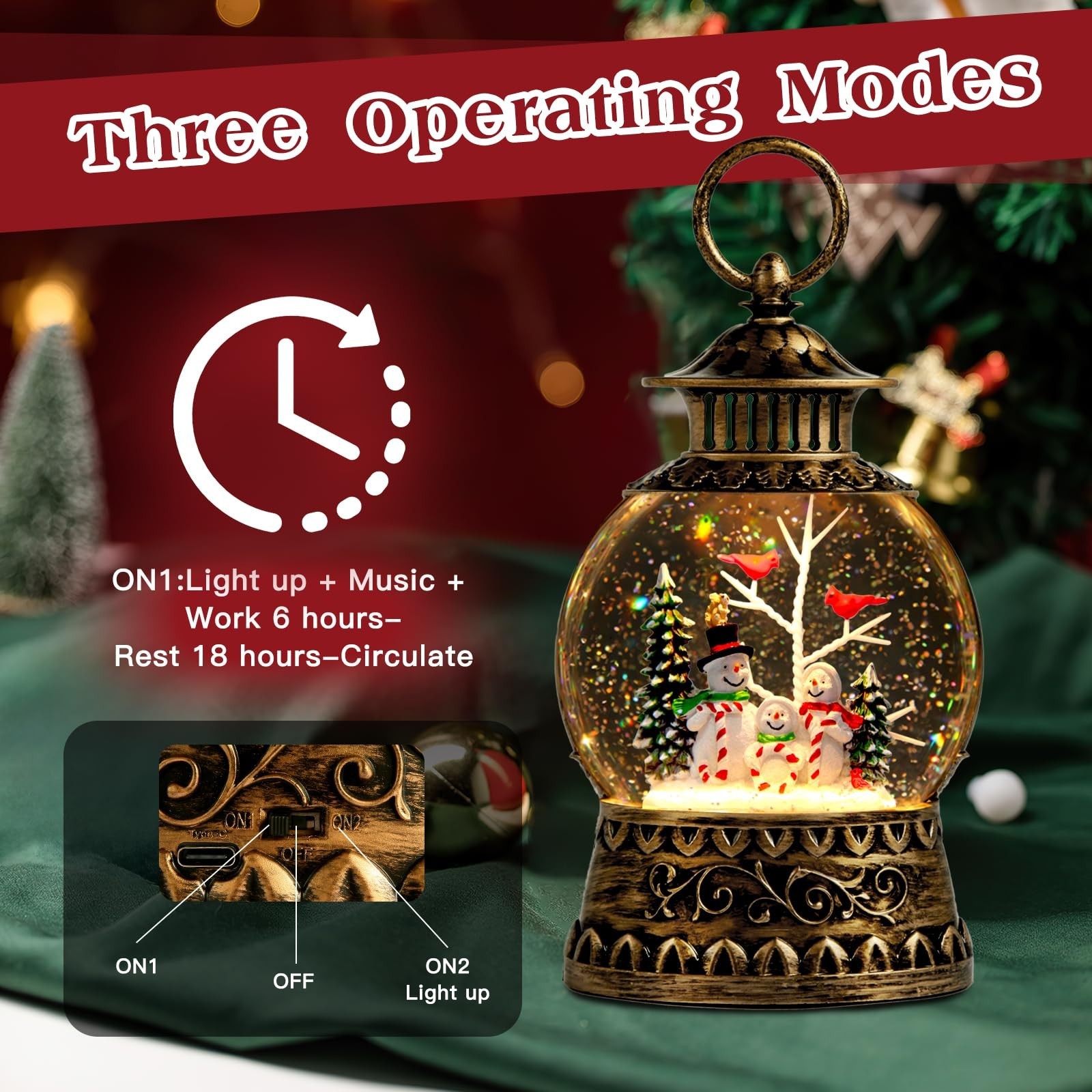 как выглядит Christmas Snowman Snow Globe, Cardinal Musical Snow Globe Lantern Lights with... фото