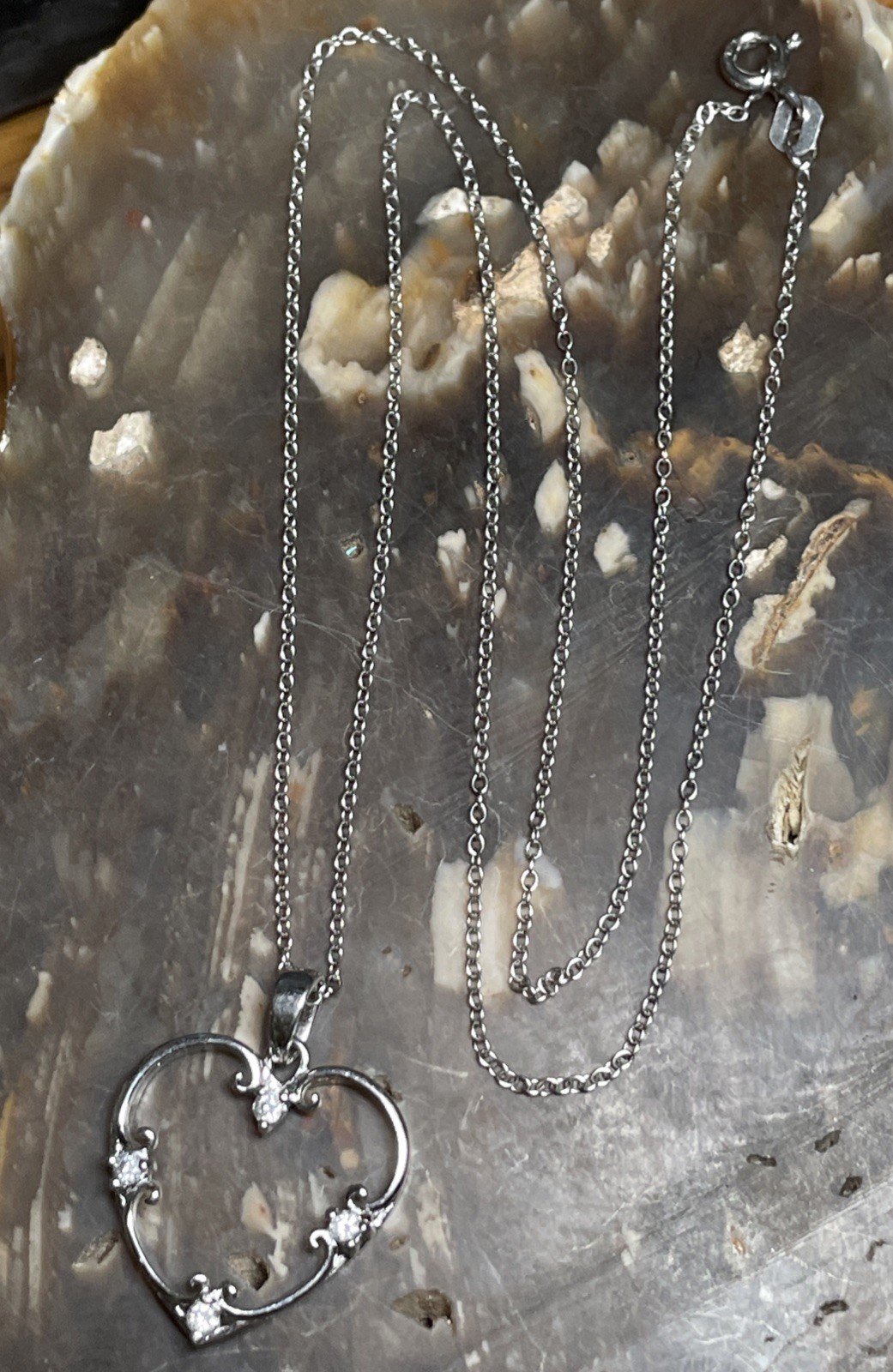 Sterling Silver Cubic Zirconia Fancy Heart 17.5 Pendant Necklace