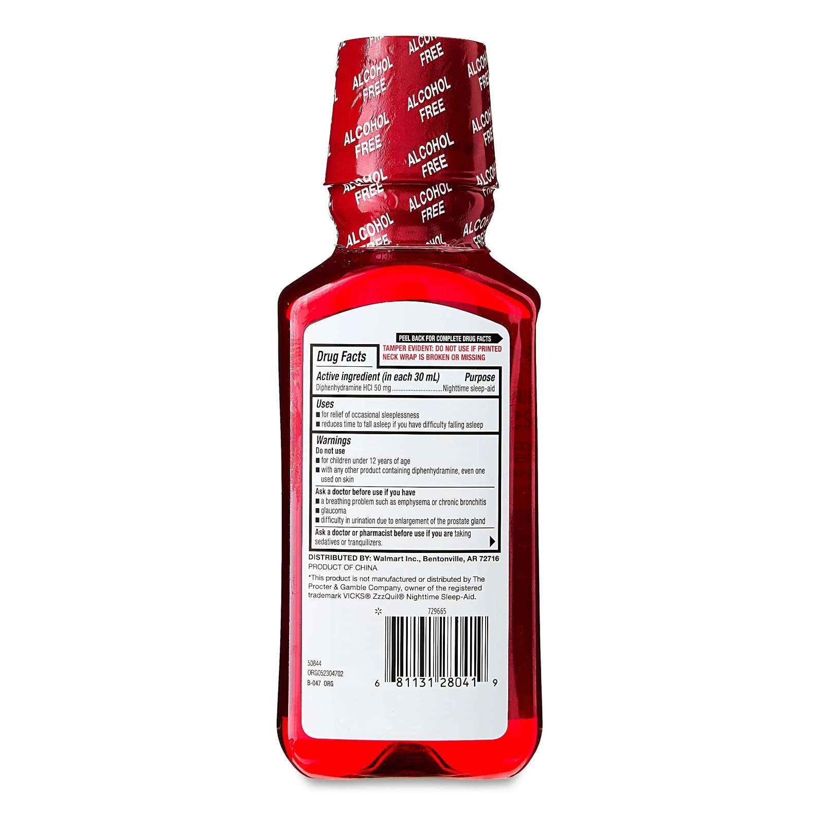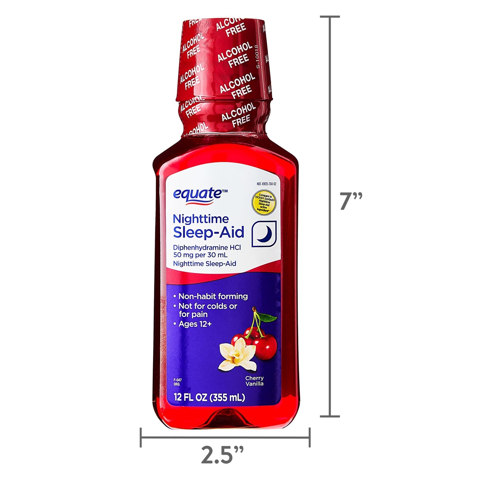 Equate Nighttime Sleep Aid Liquid 50mg, Cherry Vanilla, Alcohol-Free, 12 fl oz