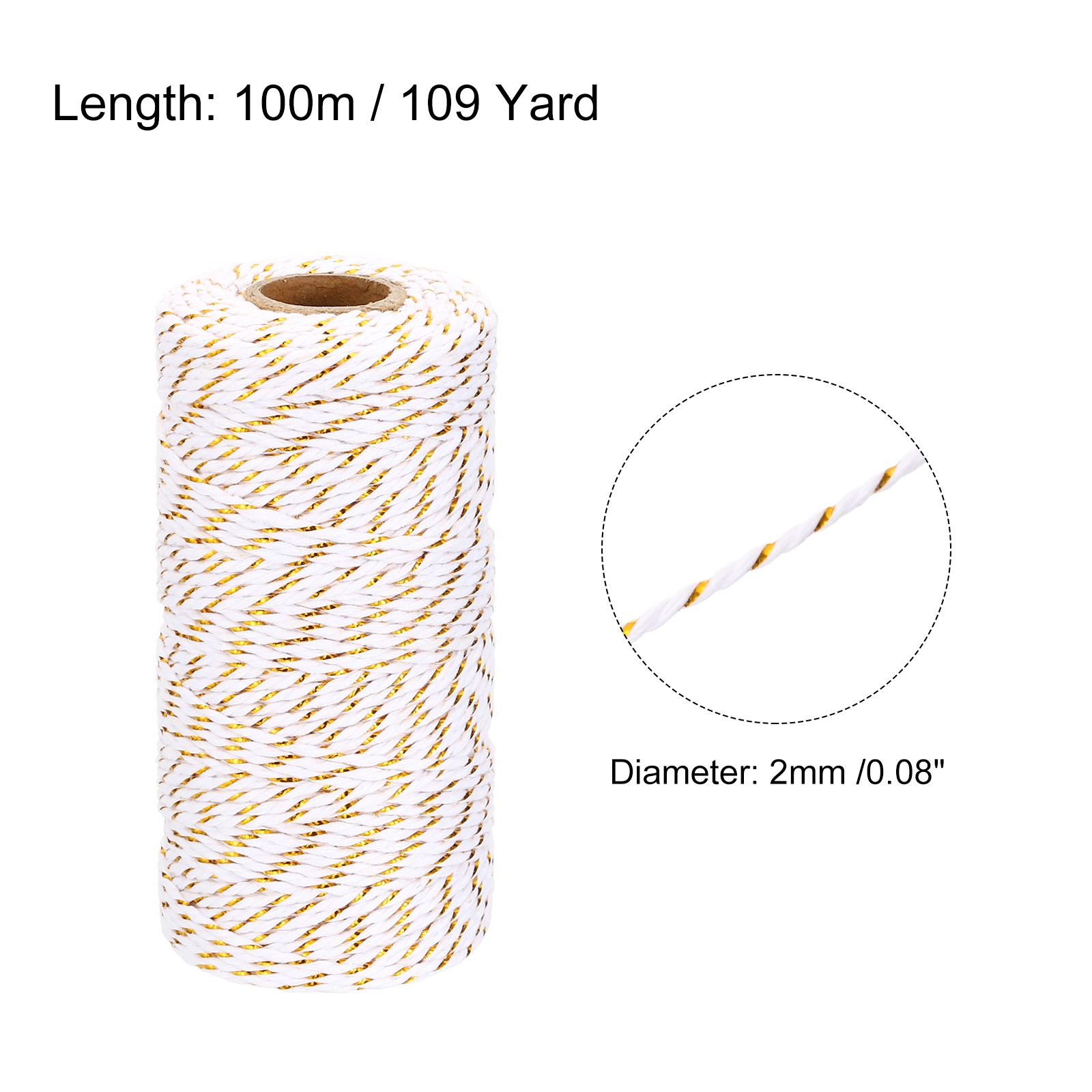 как выглядит Cotton Rope Twisted Braided Rope Cord, 100m/109 Yard White Gold, White Silver фото