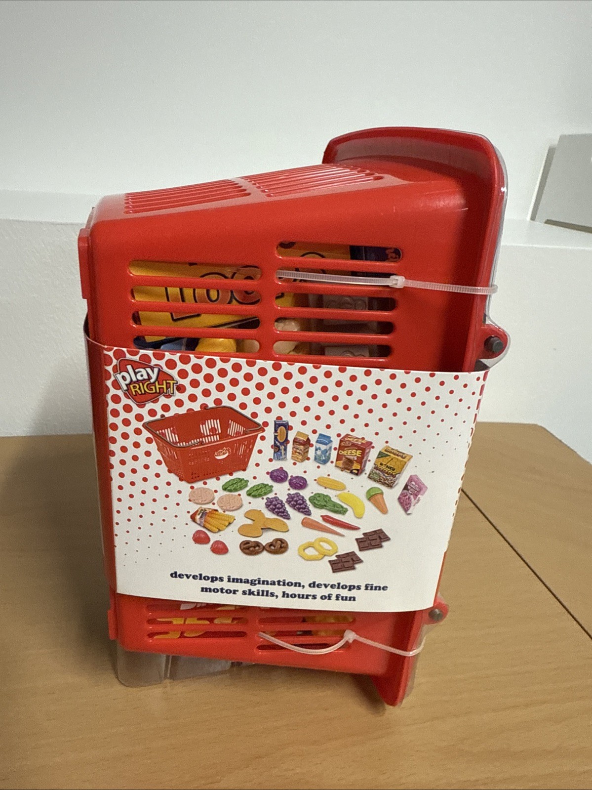 как выглядит Play Right Grocery Basket Set Kids Children 40 piece Food Shopping Basket фото