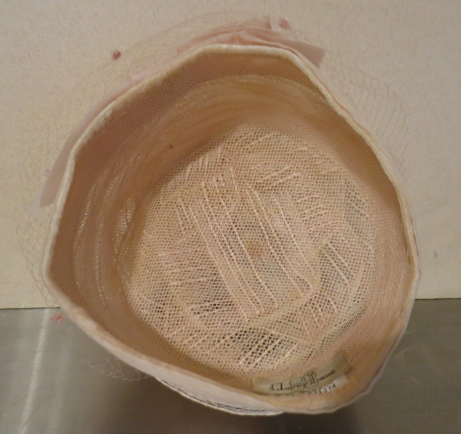 как выглядит Pillbox Hat w Tulle 1950s Pink CLOVER LANE "Union Made" Tag Church MCM Pinup фото
